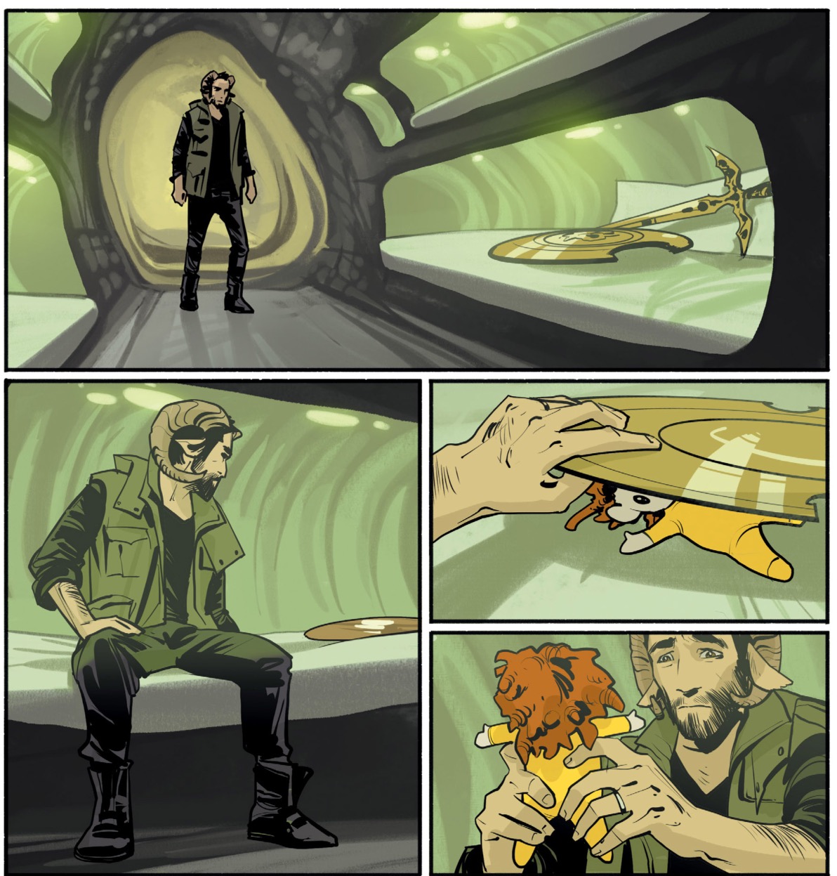 Alana, Hazel, and the in-law grandparents will endure a different situation, dealing with Dengo the psycho kidnapping robot pissed off with government politics. Where this goes in the end, is curious and leaves us hung for more. Meanwhile Gwendolyn, Lying Cat, The Brand, Sweet Boy, and Sophie are on a quest for dragon spunk; to save The Will, the bounty hunter I have missed for too long. This leads to some somewhat campy action involving a beast, whose nature is too natural; which develops a gross situation then heightens the danger. Overall, a great issue which has us readers anxiously awaiting that next issue.