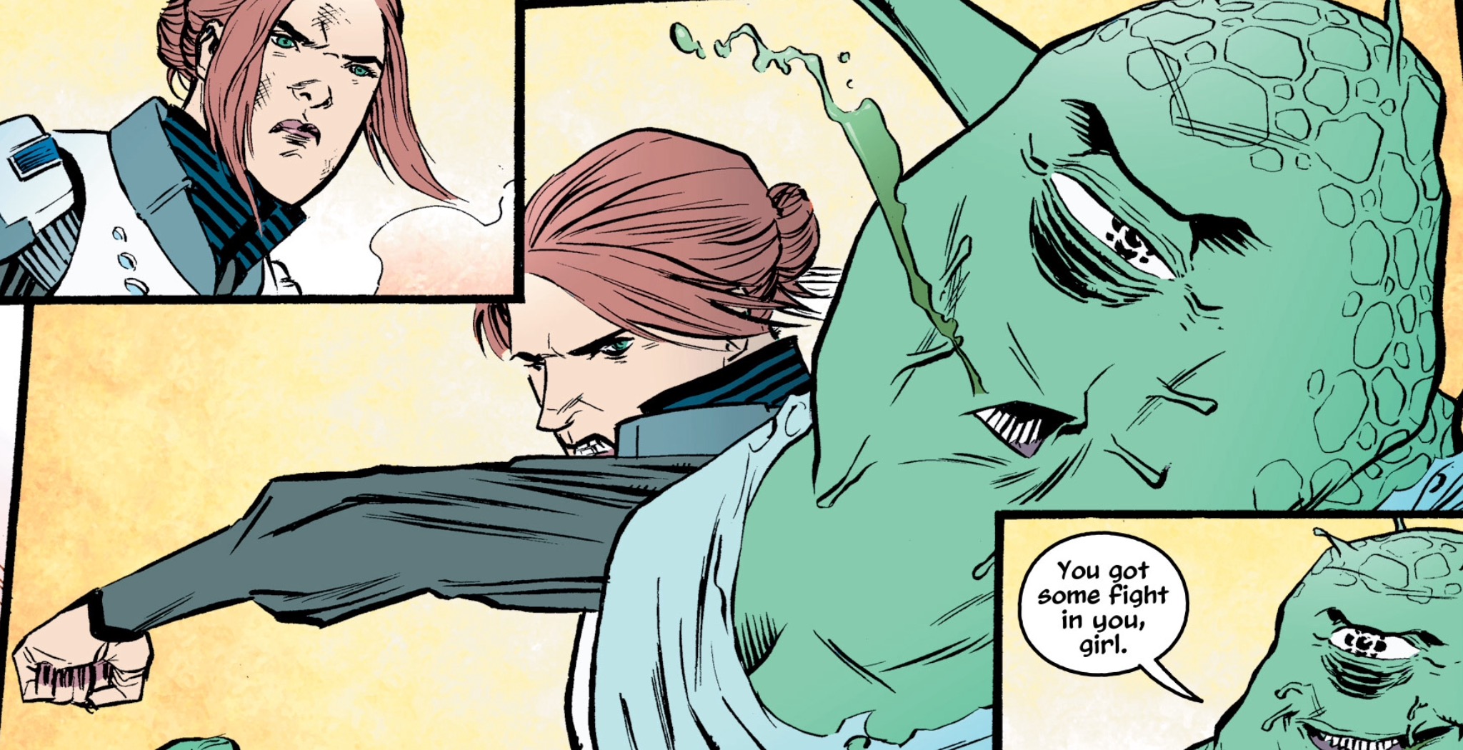 She is a badass. It takes heightened bravado to slug a big, hefty giant-eyed alien. What’s more for Clara, is that she is not some high plains drifter, as often stereotypes do in these frontier fantasies. Clara is the new sheriff for a small very distant town, and a single mother; both demanding responsibilities to take on. Her attitude is fearless, to the point to the point of feeling confident she can take on both.But, there are challenges as we soon see from the first issues, where she will have enemies and new dangers to face. It’s exciting for us readers to sort of live through her, and the high stakes both domestic and outside. A fresh start is in story for her, and us readers.