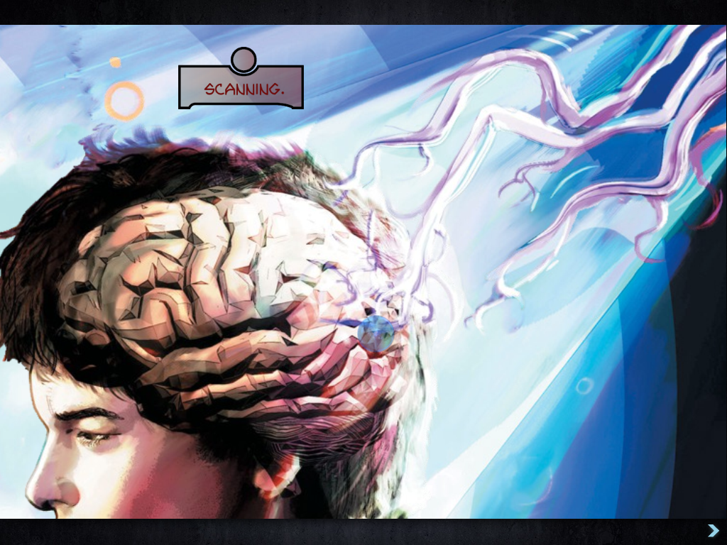 The tech and surroundings are gorgeous with vivid detail. The appendix adds a lot of background info on important story elements, and adds a ridiculous amount on less-important-to-the-story elements you could care about (like “illegal whaling” and the “evils of fast food”). Perhaps you want to learn about “video conferencing” and the “Handscanner,” and what they have to do with current privacy issues: Yes, let’s interrupt our story with these… But as a fan of world building source-books in any science-fiction or fantasy medium, the appendix is a favorite part of this app for me. I wish there was such a thing for regular comic-book reads on digital devices.