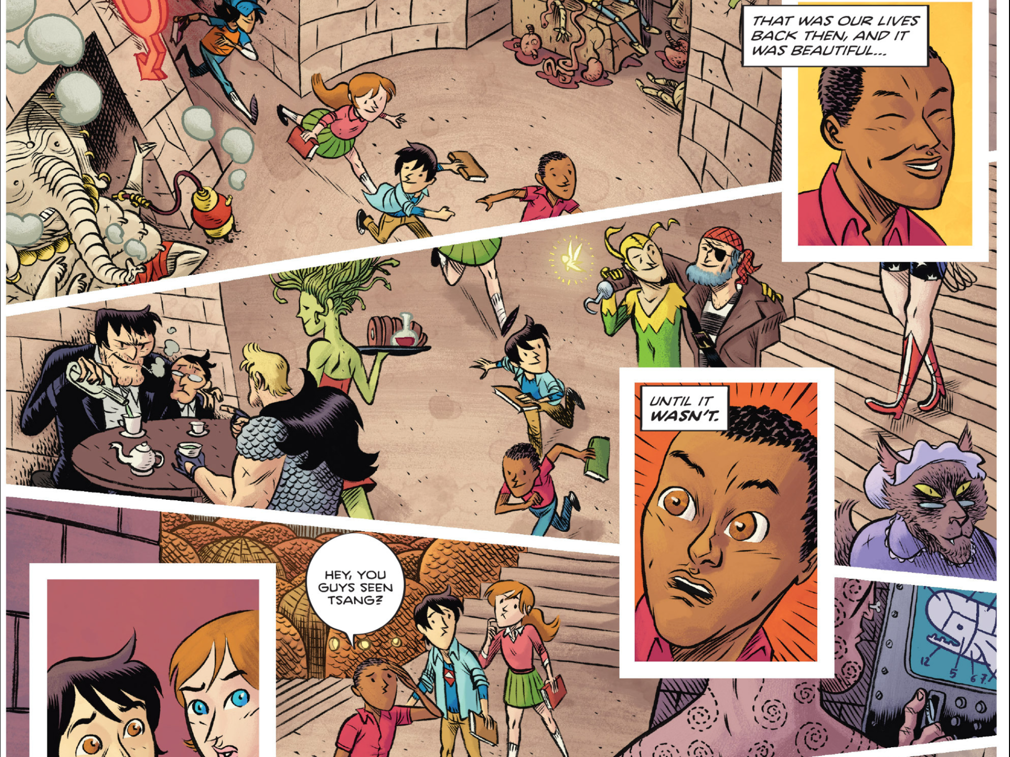 So goes the question I have in mind, what is the deal with these books? Are these dimensional portals, or some sort of contained magic? Is the nature of it all good or evil, cursed or blessing? Yes, there are some Locke and Key, Unwritten vibes. But I am hoping this is not just another of those see how all the vines intertwine because the characters parents did something ages ago kind of thing. The kids are interesting enough, for keeping a strange secret and having crazy adventures. That’s something I hope we come back to in later issues. But in looking back, I kind of hope the strange things are keep us guessing.