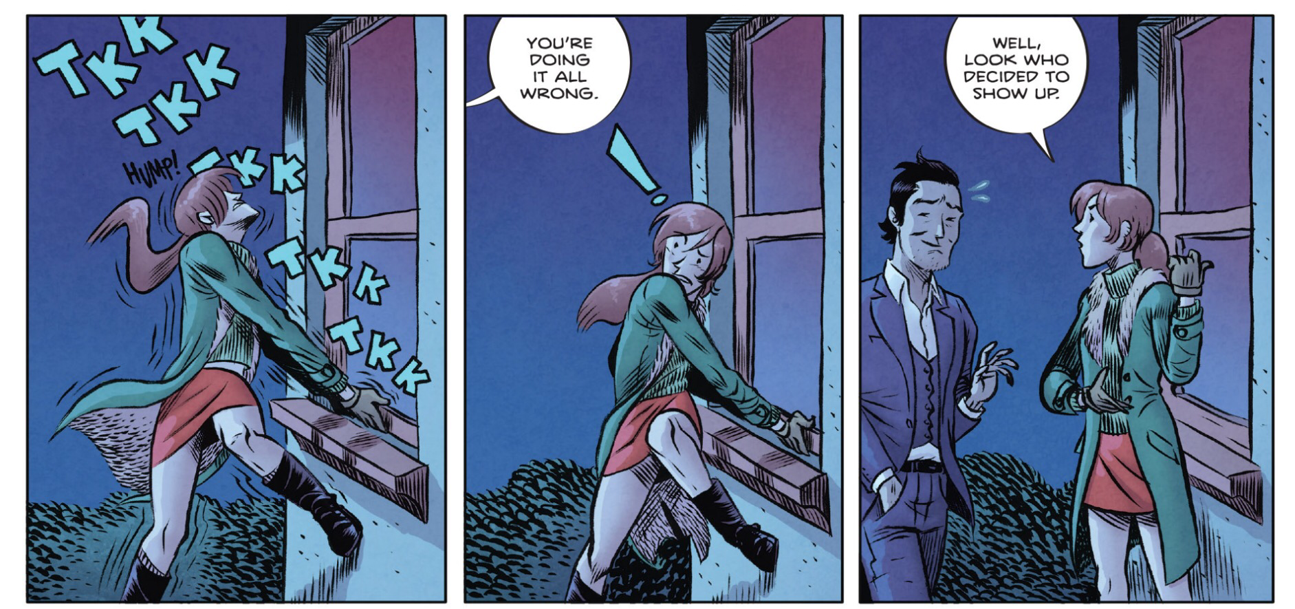 So that being said, the art is also stylish. Not my preference with the somewhat cartoonish tones. But still, there is emotion and depth to the expressions and posture. I also enjoy the lettering and sound effects. A bit old fashioned, but builds well upon the moments with its well-placed choice of placement.