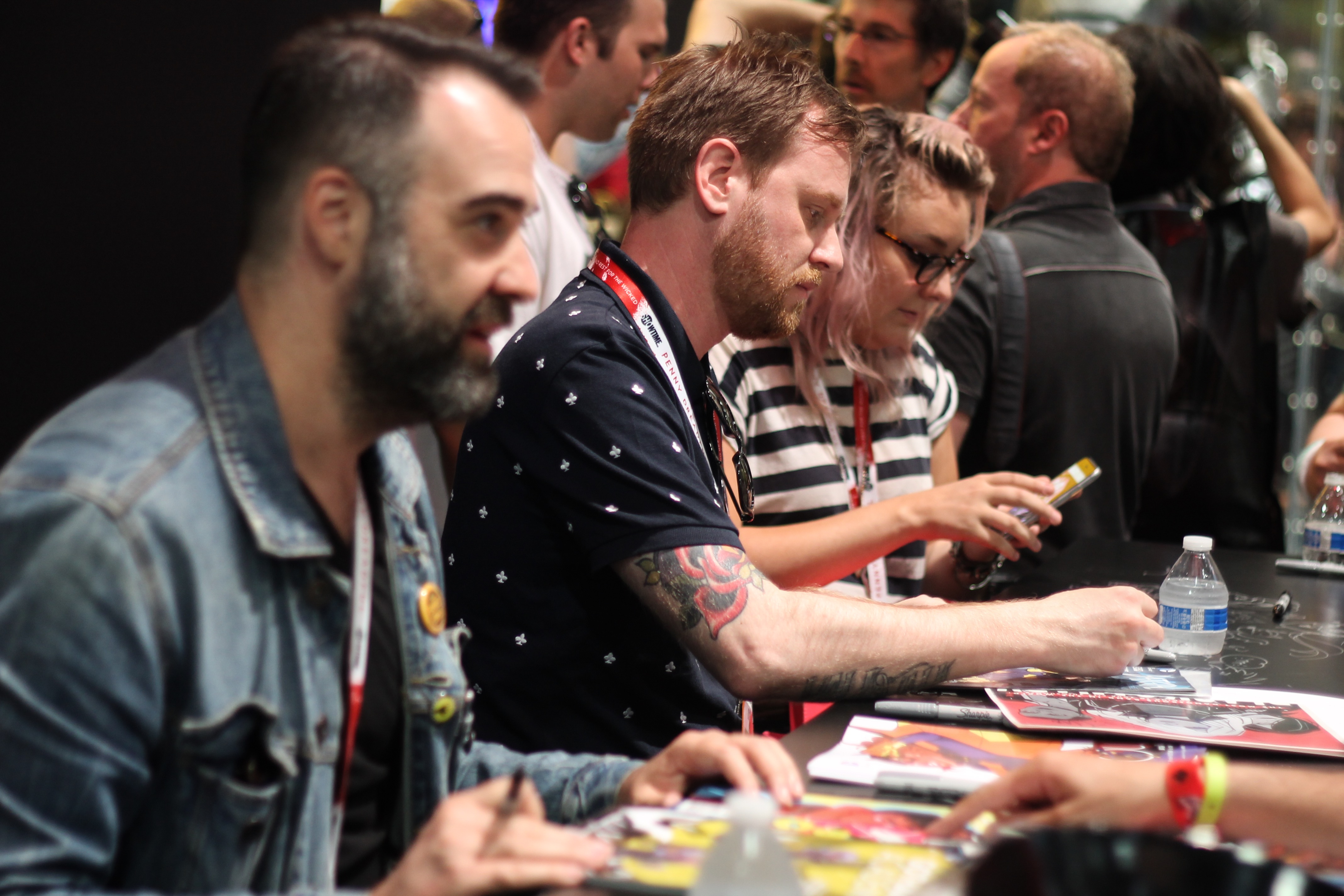 Back at the DC booth..Brenden Fletcher, Cameron Stewart, and Babs Tarr; the current creative team on Batgirl.