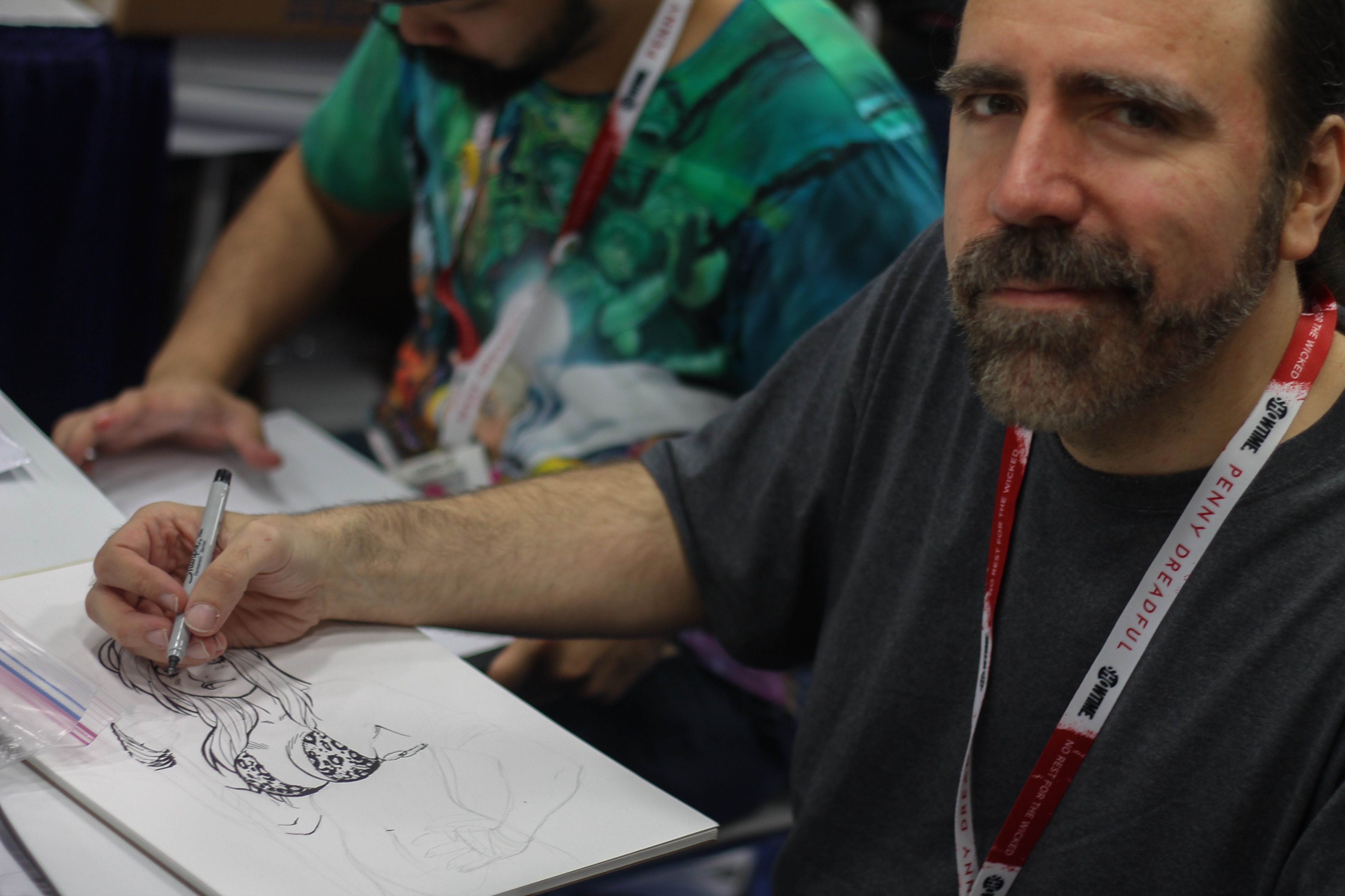 Art Thibert, awesome artist and inker being chill in the Artist Alley..