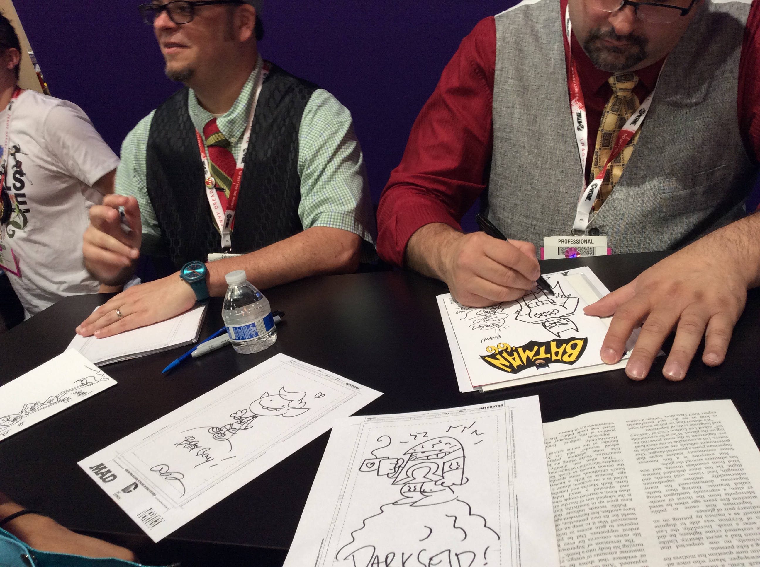 Sunday at the DC Booth, where Art Baltazar and Franco Aureliani (Tiny Titans) did some sketches for patient fans. The Darkseid one is mine!