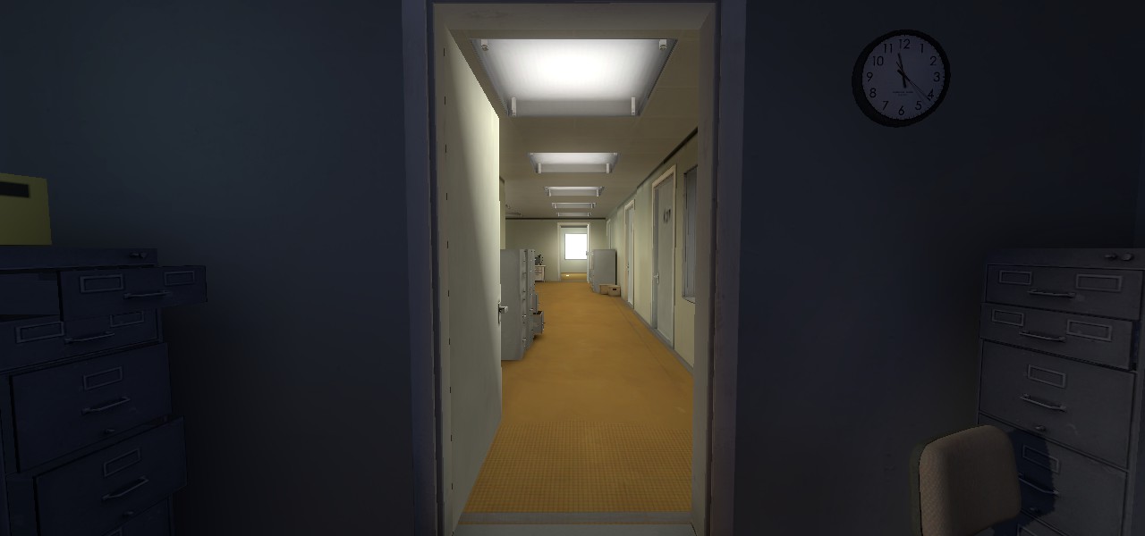 The layout is genius, where at first may seem to have little purpose but to provide environment. There is some wicked humor and jabs at the everyday mundane life of the cubicle worker. Prepare for the sound of constant locked doors and beeps that do nothing, should you decide to freely explore the game looking for..something else.