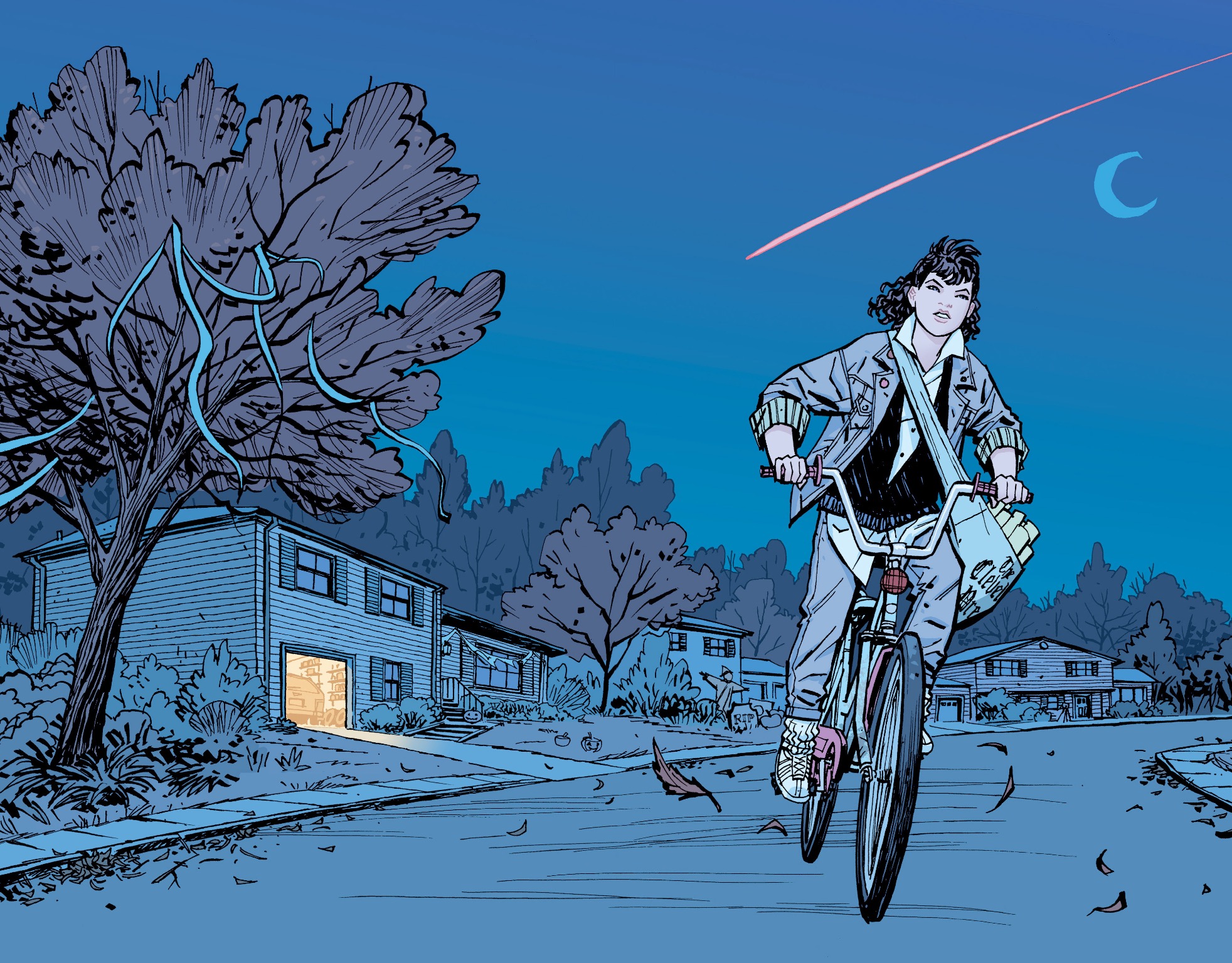 “In the early hours after Halloween of 1988, four 12-year-old newspaper delivery girls uncover the most important story of all time. Stand By Me meets War of the Worlds in this mysterious young adult adventure, starting with a spectacular DOUBLE-SIZED FIRST ISSUE for the regular price of just $2.99!”