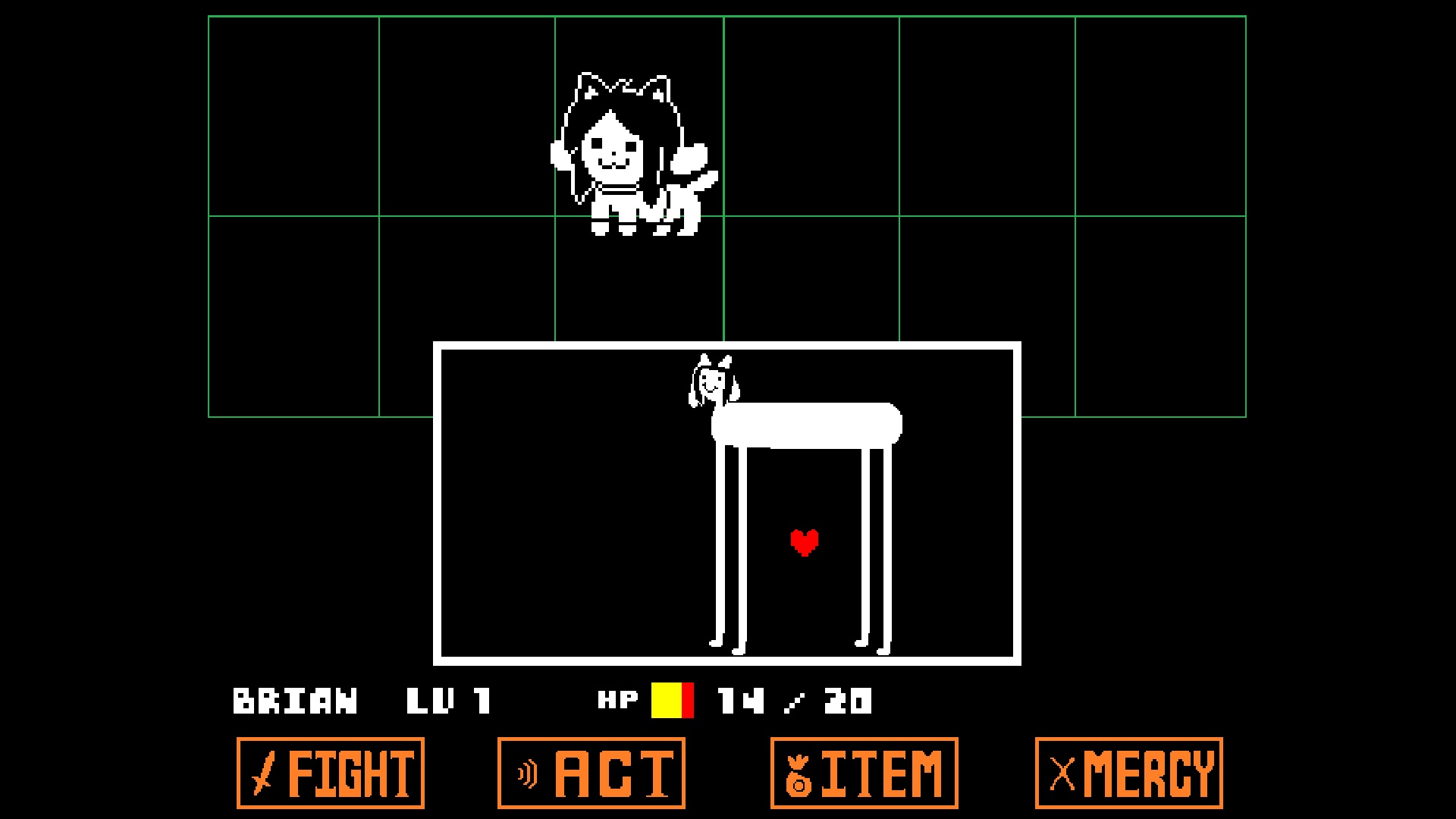 Even if you come in peace, monsters will still attack you because, well, they’re monsters! This will result in an interactive ‘bullet-hell‘ type phase where the player (represented by a heart) will have to dodge the monster’s attacks. Each monster has a unique set of attacks which can range from legitimately dangerous to downright bizarre. Once you have proven yourself peaceful to the monster, you will be able to end the battle and continue forward. For a game which promotes pacifism, the player is always actively involved.