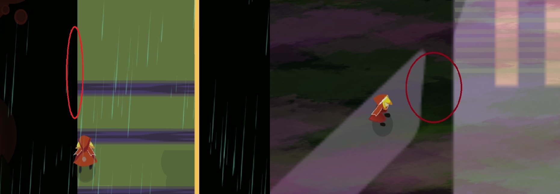 Animal Gods 22One such mechanic was adequately defining map boundaries. As pictured above, the left side of the picture gives an example of an edge your character would die upon crossing, but the right side of the picture shows a similar edge you had to cross to continue progress of that map.