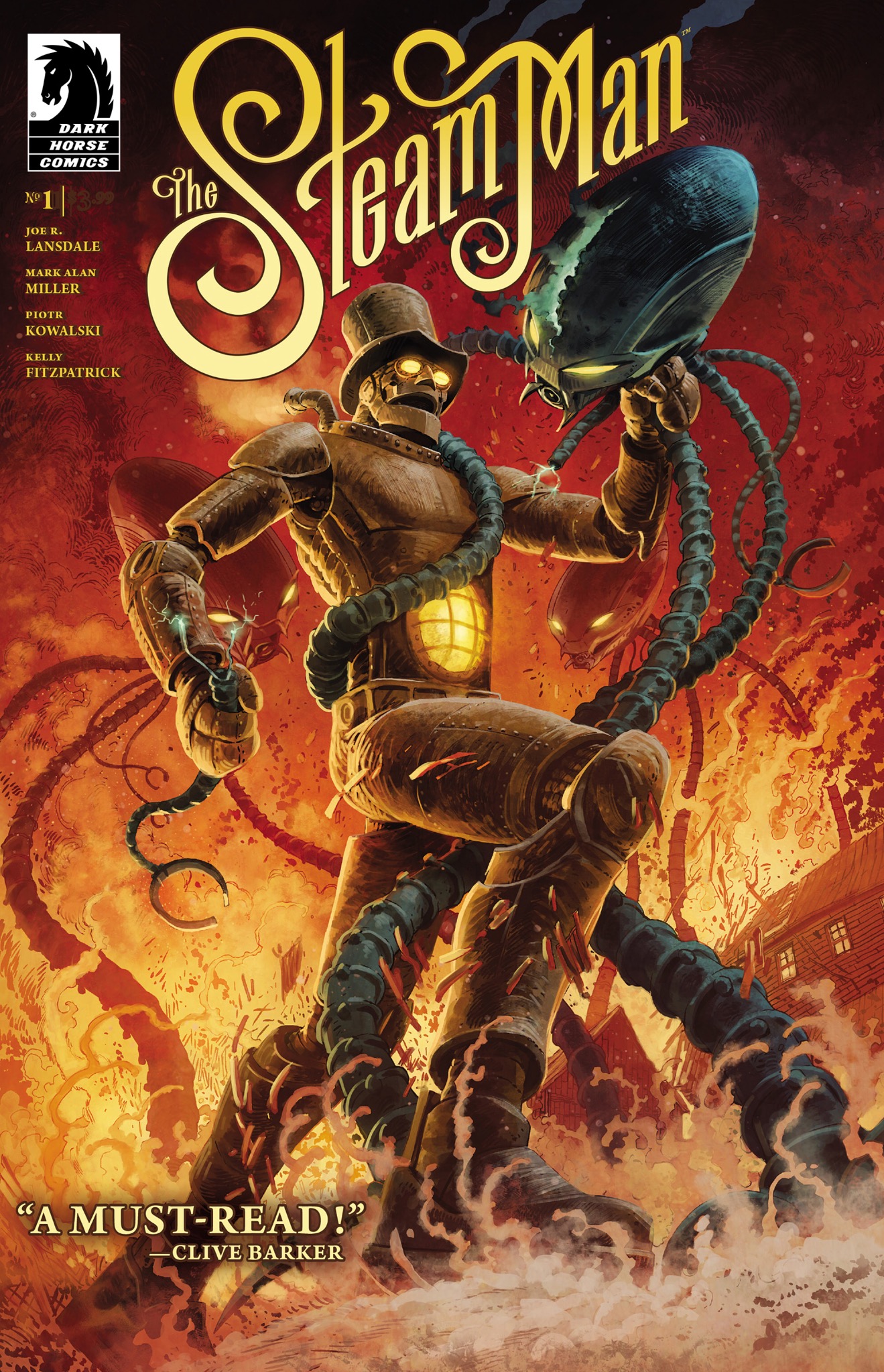 “The Old West, but not as we know it. Giant steam-powered robots are created to take down invading Martians and armies of killer albino apes in an all-out brawl. The Steam Man, a giant metal man operated by a team of monster hunters, seems to have the town protected and the West under control, until a crazed and powerful vampire comes to town to bring forth the apocalypse! Cowritten by Joe R. Lansdale (Cold in July) and beautifully illustrated by Piotr Kowalski (Sex). “