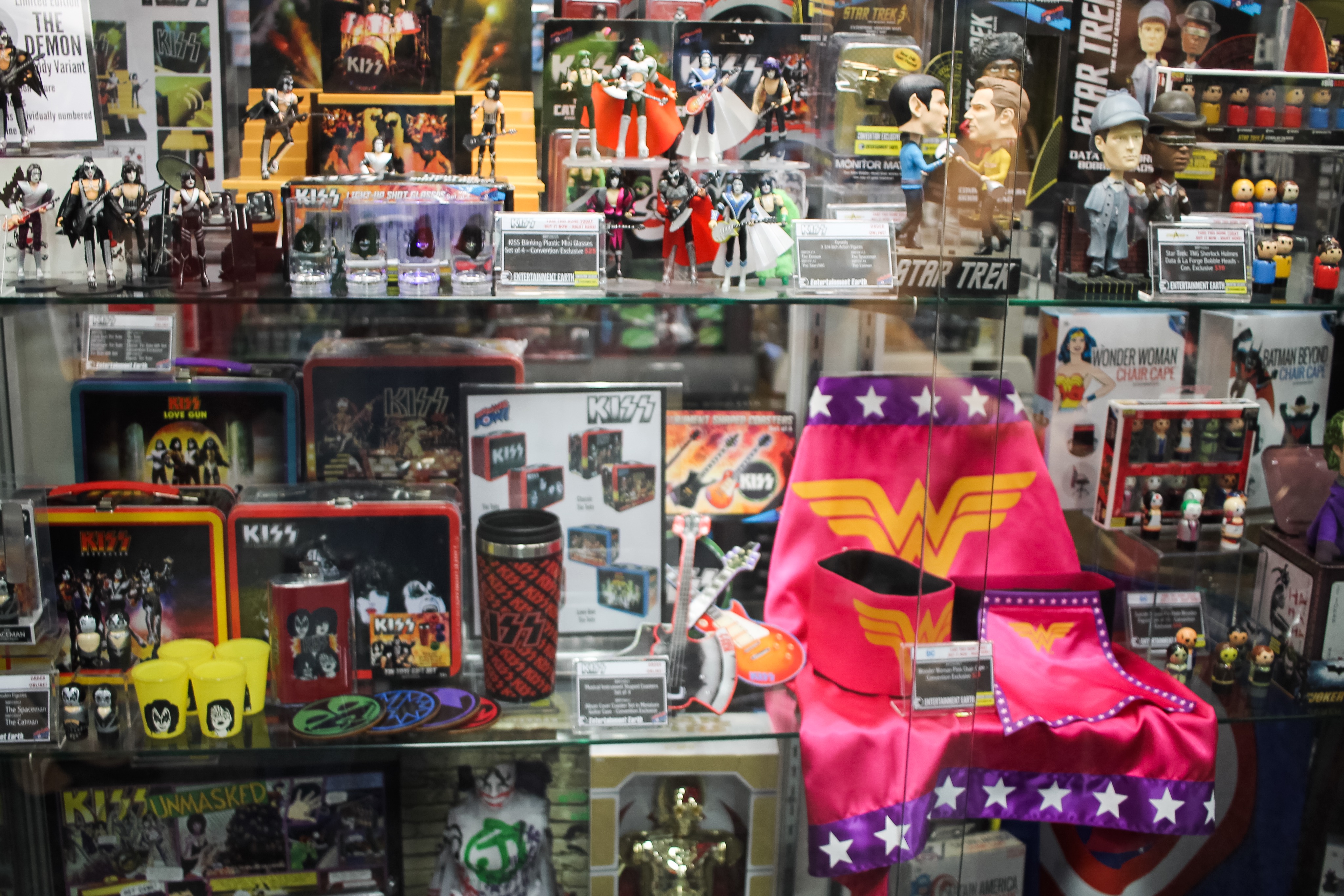 The Entertainment Earth booth, one of many here who showcase and sell collectibles. Some items are previews to new products coming out. Other items are show exclusives one must wait in long lines and/or be very lucky to buy.