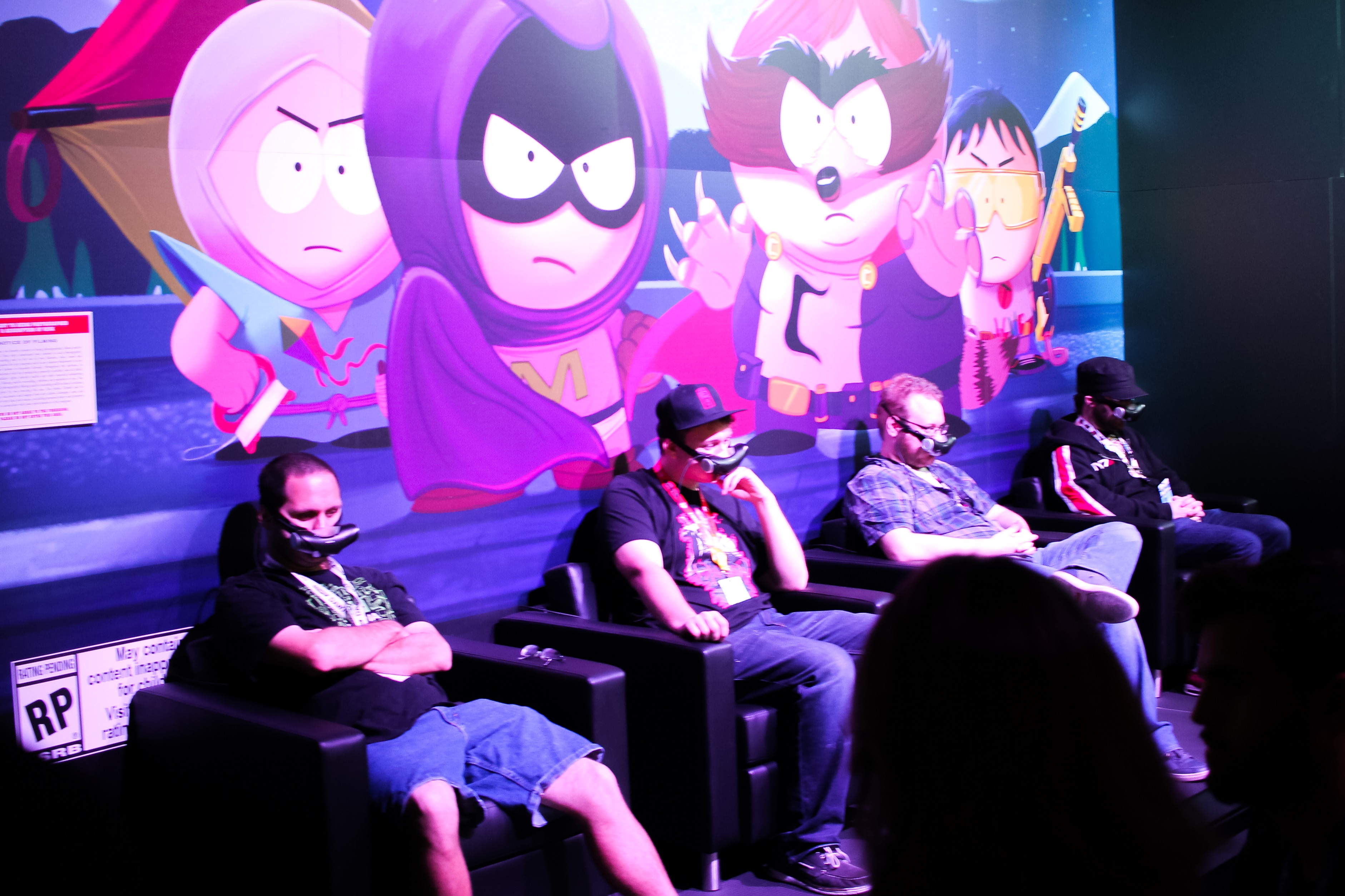 The upcoming South Park: Fractured but Whole game, presented here with the Nosulous Rift device, which is capable of emitting fart smells into the nostrils of its players. Yup, technology has come a long way!