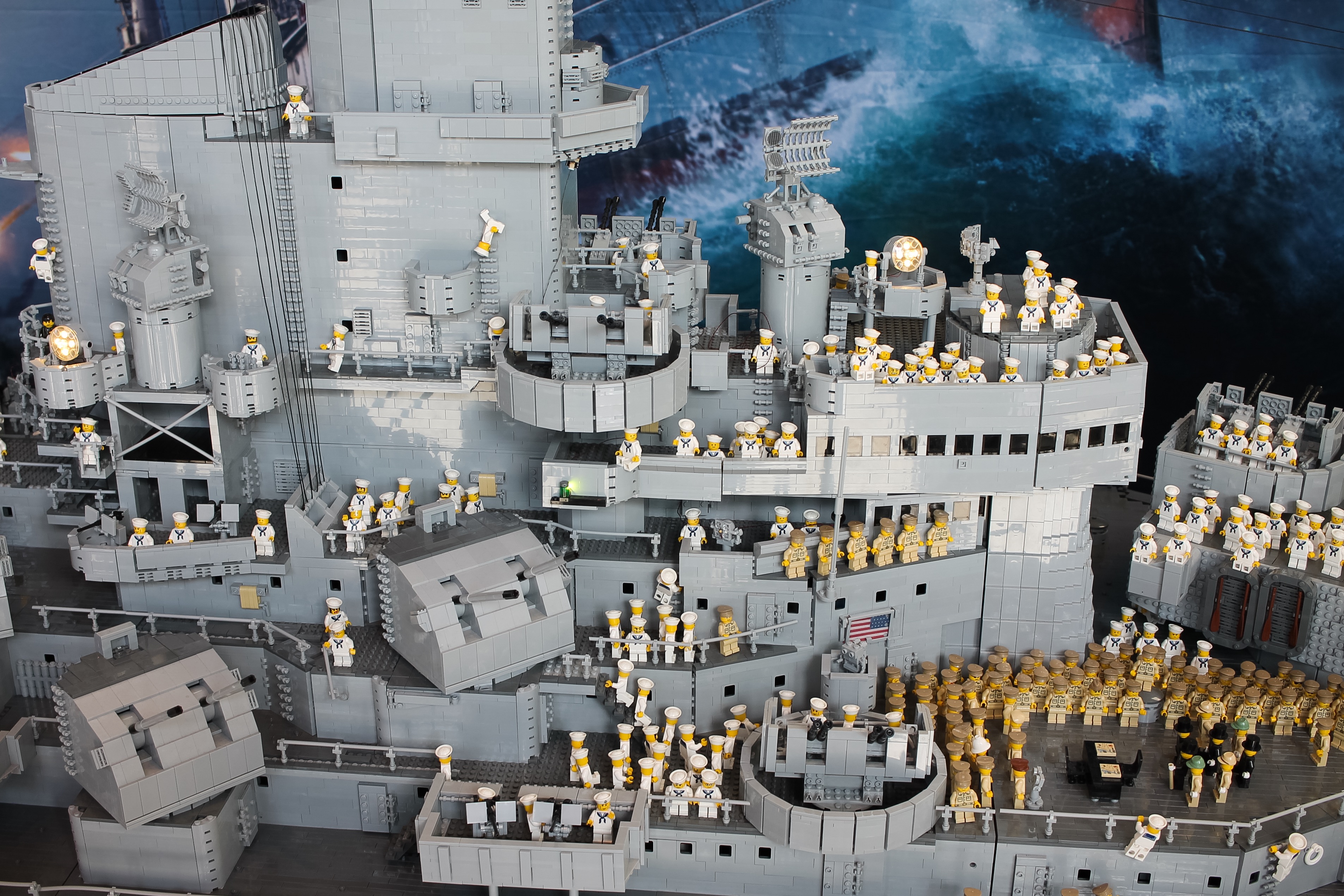 An amazing construct of the USS Missouri made of Lego bricks, to promote the World of Warships game…