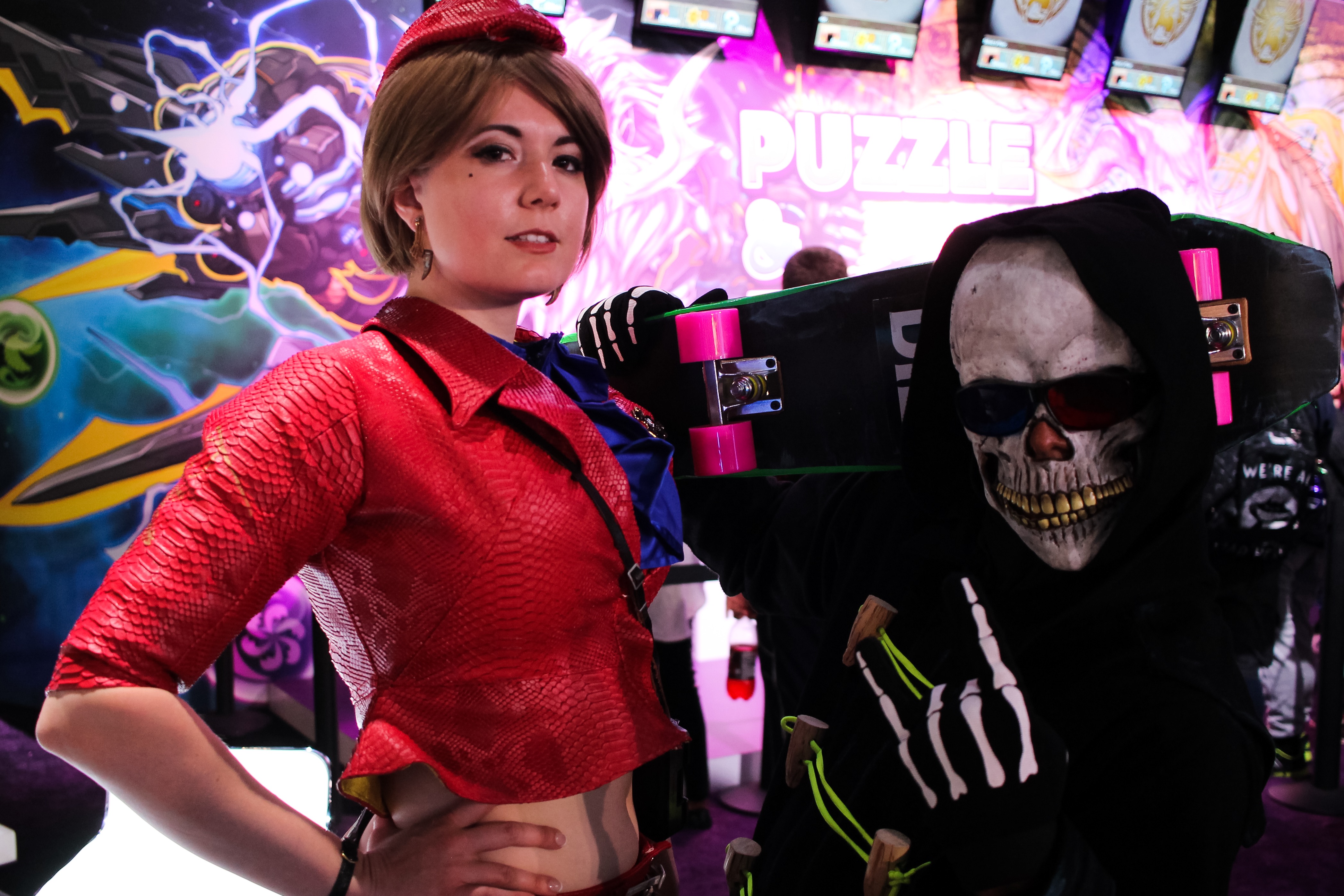 A couple of cosplay promoters at the Puzzles and Dragons booth.