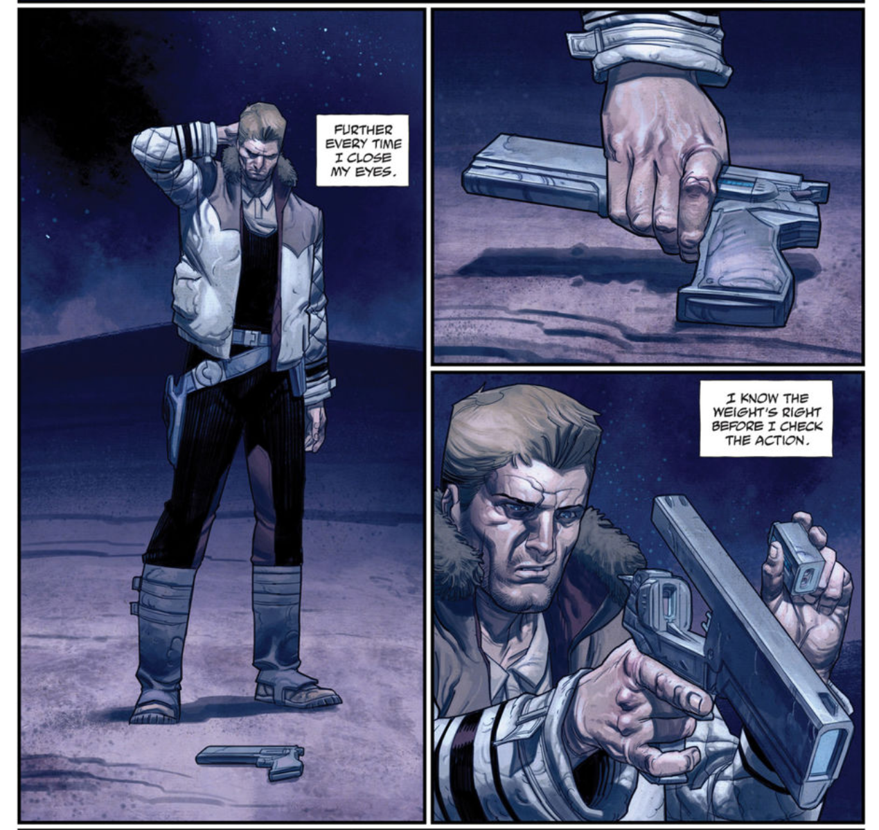 Ivan Brandon: Yeah, it’s a balance where believability is key. You can make almost anything believable if you approach it the right way if you’re honest about it. I can’t say there’s a correct right or wrong way of doing that, but for me, it’s trying to sort of brown things in. Sci-fi is a great example, where people can get a little too obsessed with a lot of bells and whistles that make up sci-fi. For me, if you can create recognizable characters that can anchor the reader into some sort of something they are familiar with, from their own experiences and own emotions, or whatever. Then, you can build any sort of environment around it that you can believe, then you learn from that and appreciate that world through the characters eyes. Then, what I try to do is focus and find the humanity in the character in whatever period it is, like in my Viking story before Drifter. Different as that story might be, there are very classic desires that any kind of human has in any time period, with specific desires and emotions, I can hopefully connect with those things and then I can take the reader along to.