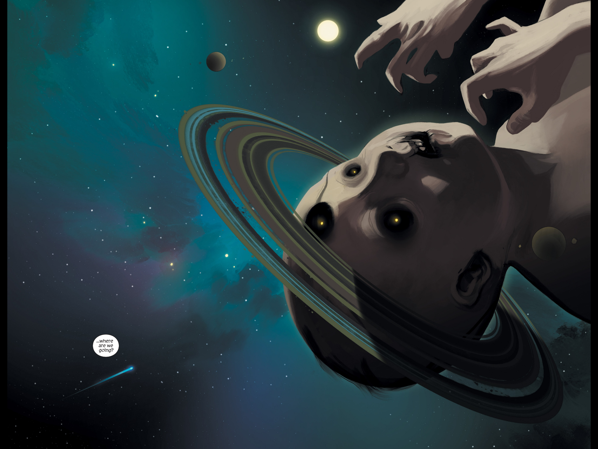 One a side note, there is one particularly striking shot done by Fiona Staples here, which brings Saga back its limitless realm of imaginative possibility. Amazing, I show you…