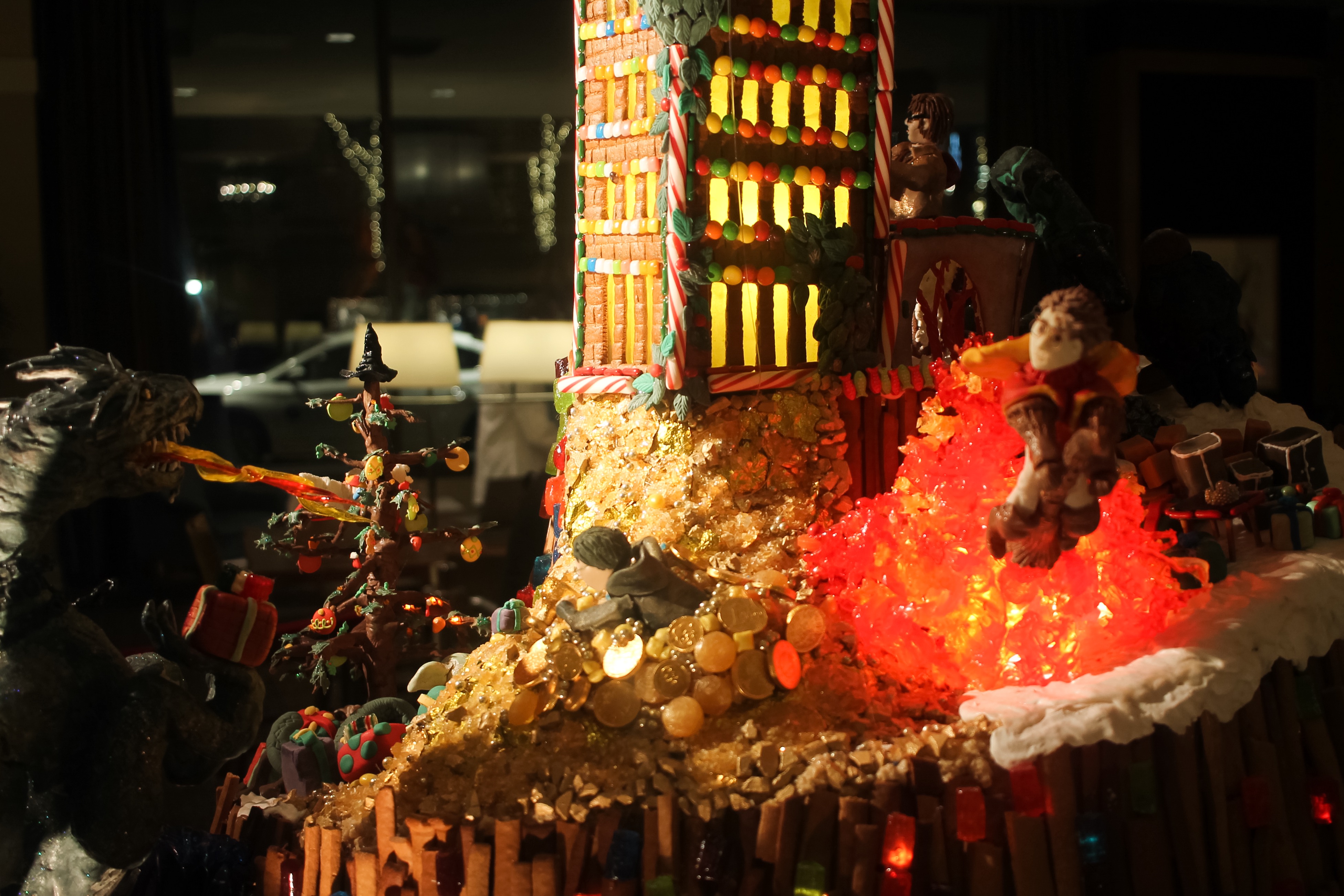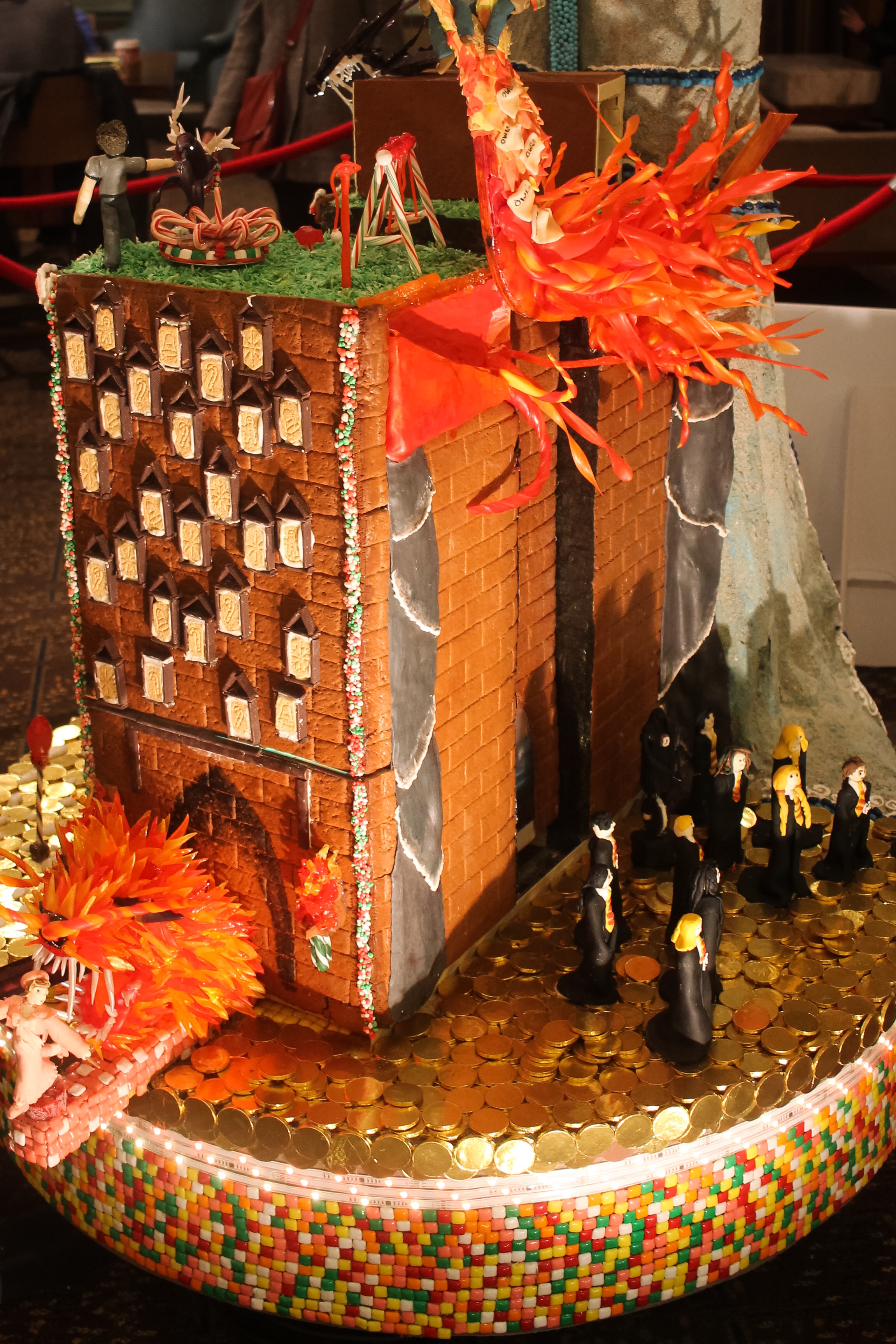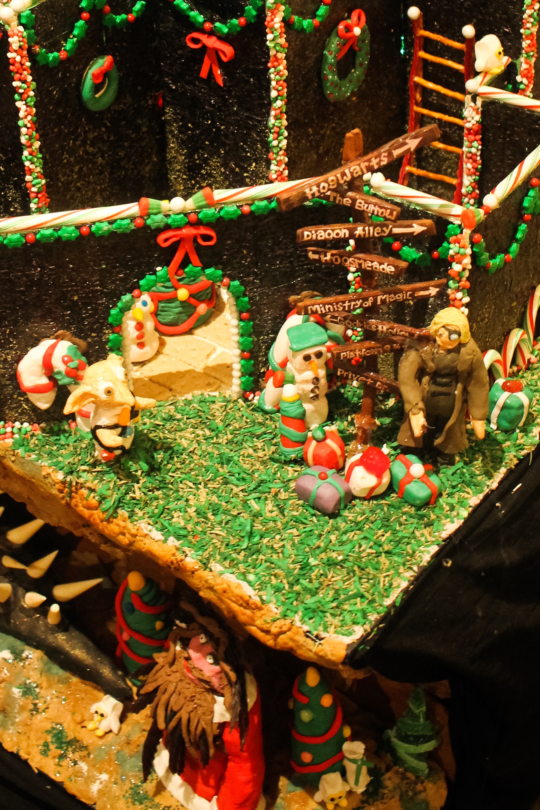 Last year’s Gingerbread Village theme was all about the Star Wars. Now, it’s gone full Hogwarts with displayed exteriors made mostly out of reinforced gingerbread, frosting, candy bits, lots of jellybeans and other sugary snacks best used for such display. Each display developed from the work of an architecture firm and lead “chef.” Also involved were children (aka “Elves”) dealing with Type 1 Diabetes, promoting the cause of the Juvenile Diabetes Research Foundation (JDRF) for treatments and research.