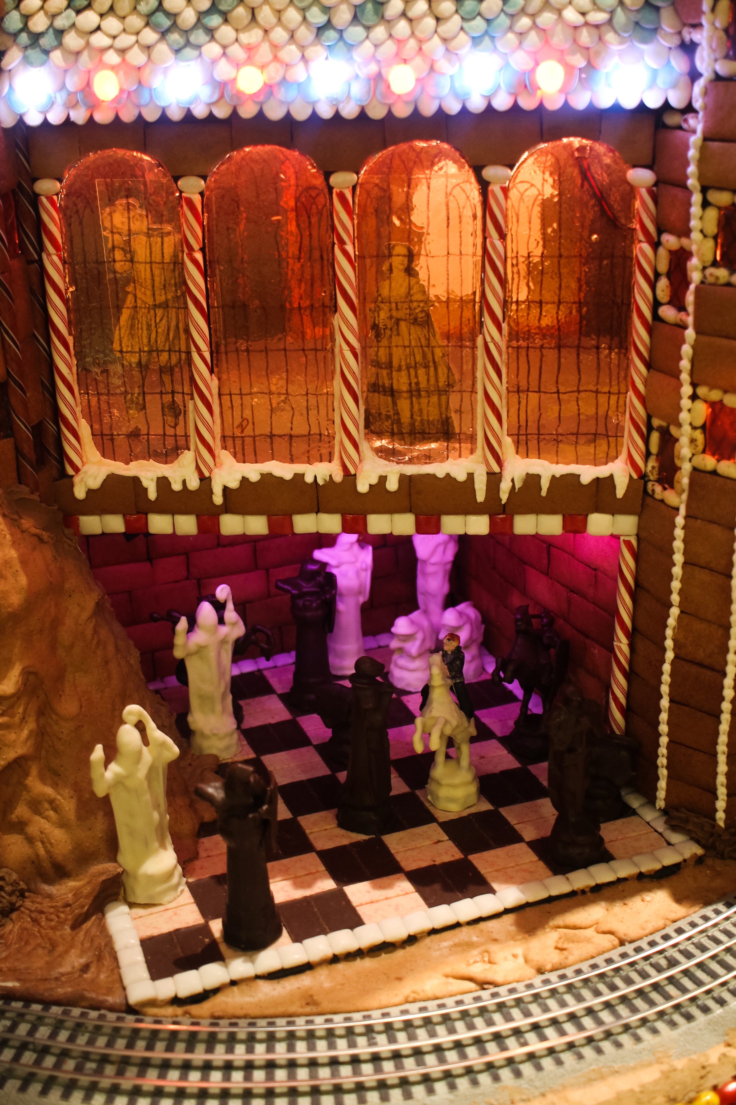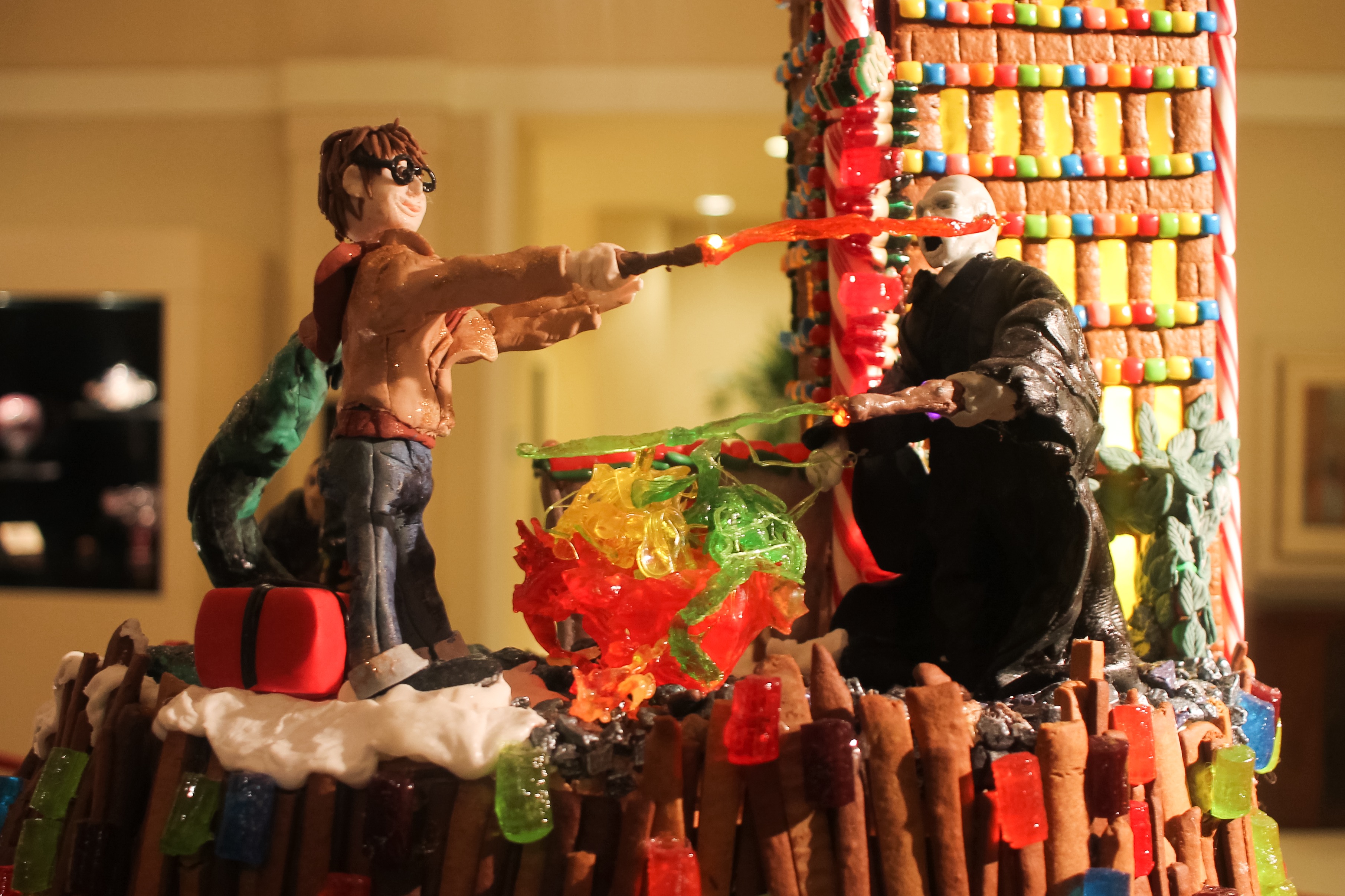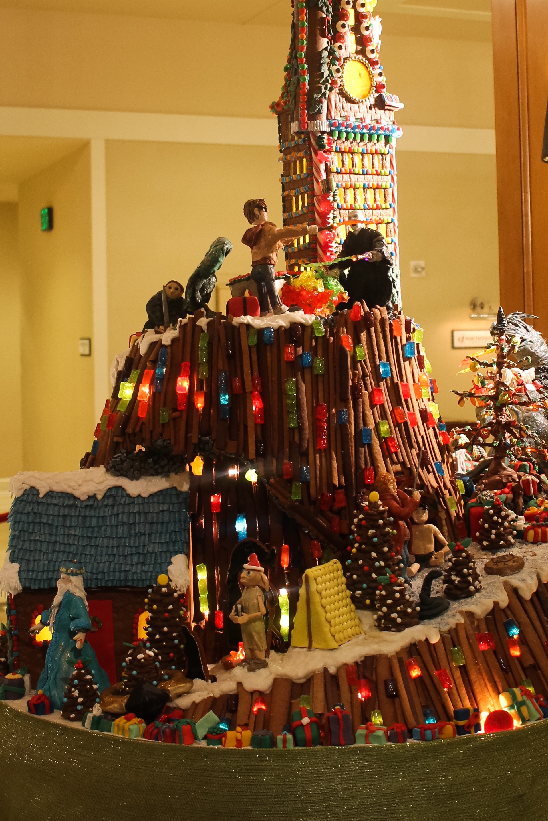 Last year’s Gingerbread Village theme was all about the Star Wars. Now, it’s gone full Hogwarts with displayed exteriors made mostly out of reinforced gingerbread, frosting, candy bits, lots of jellybeans and other sugary snacks best used for such display. Each display developed from the work of an architecture firm and lead “chef.” Also involved were children (aka “Elves”) dealing with Type 1 Diabetes, promoting the cause of the Juvenile Diabetes Research Foundation (JDRF) for treatments and research.