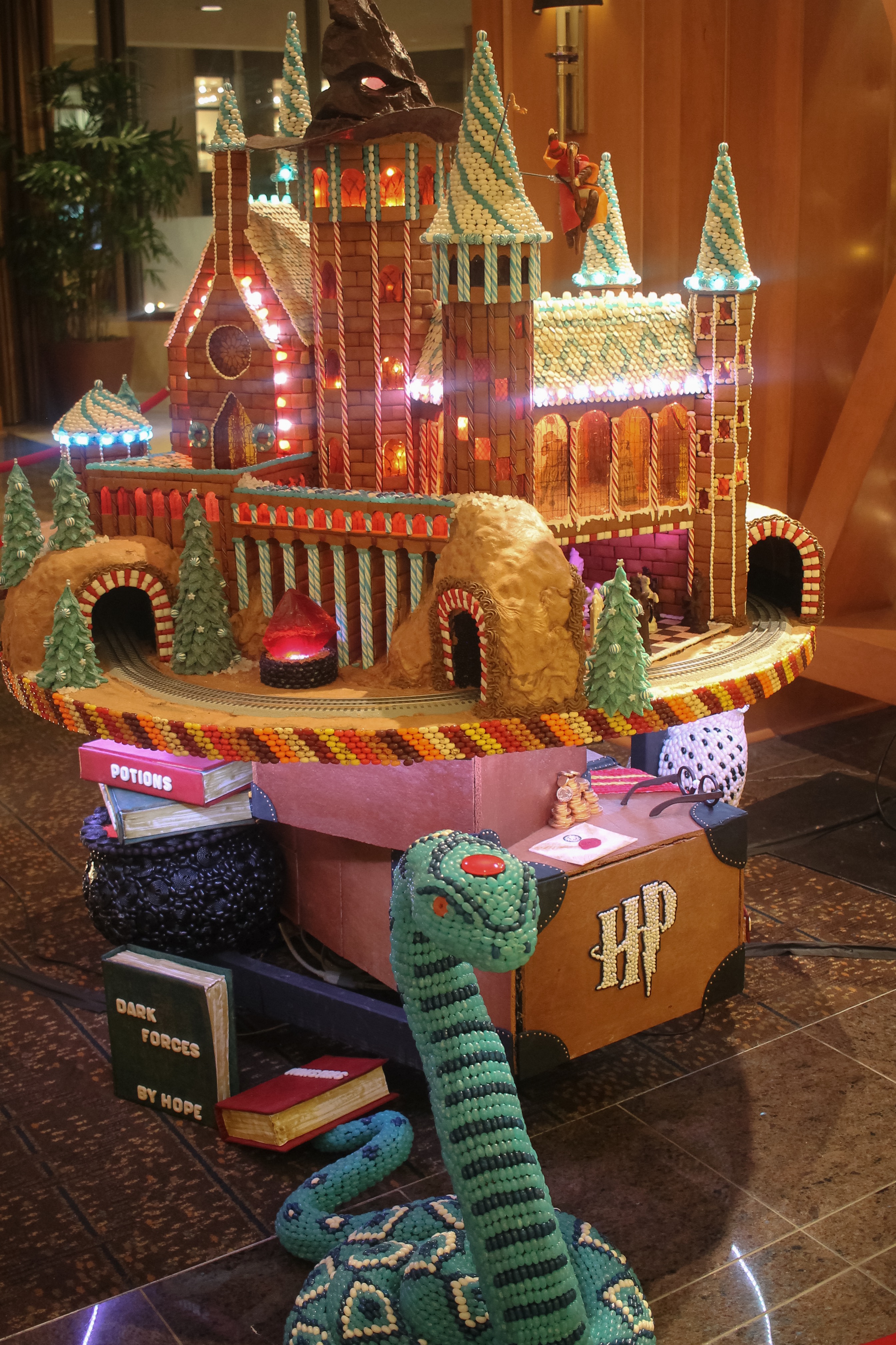 This year’s (24th) Gingerbread Village at the Sheraton Hotel in Downtown Seattle, is a most magical one. This new theme is all in on the world of Harry Potter.