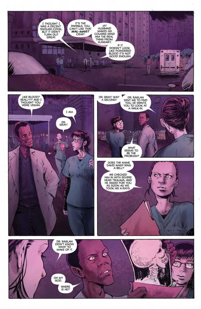 “Imagine: you’re working late at the hospital discussing recipes with a co-worker. You come into the possession of an x-ray that should be impossible, and the man whose head it supposedly depicts suddenly corners you, demanding your help. Around the same time, another patient’s head explodes. Are we having fun yet?“