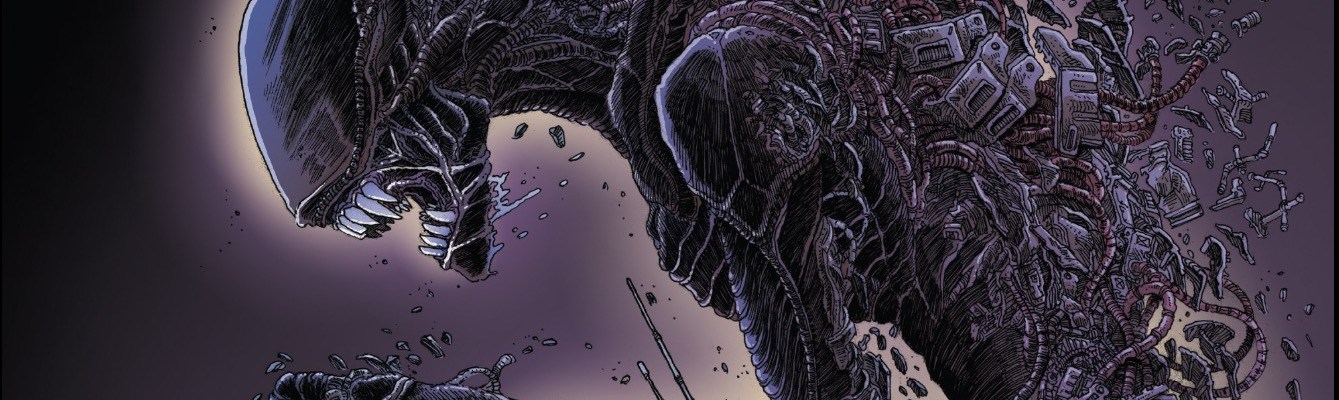 I am a huge fan of James Stokoe’s work since Orc Stain. His work continued to astound and entertainment my eyes through Godzilla: Half Century War and Wonton Soup. Now, he is doing this Alien mini-series for Dark Horse, and there is new joy in my life. So, in picking up Dead Orbit, I am already excited to hell from looking at the cover. Amazing from there, with hints already of something different for the long-running franchise.