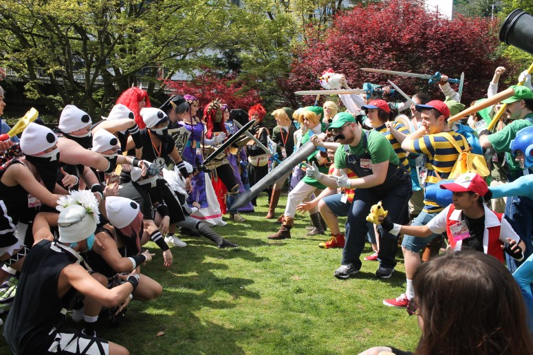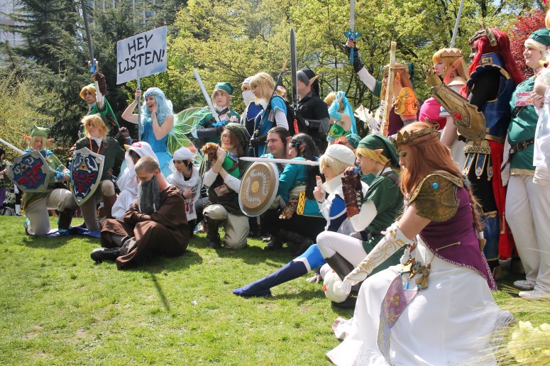 So, here are gatherings of cosplay clusters for Attack on Titan, Neon Genesis Evangelion, DC Comics, Final Fantasy, Sailor Moon, Star Wars, Pokemon, Legend of Zelda, and some Nintendo Power.