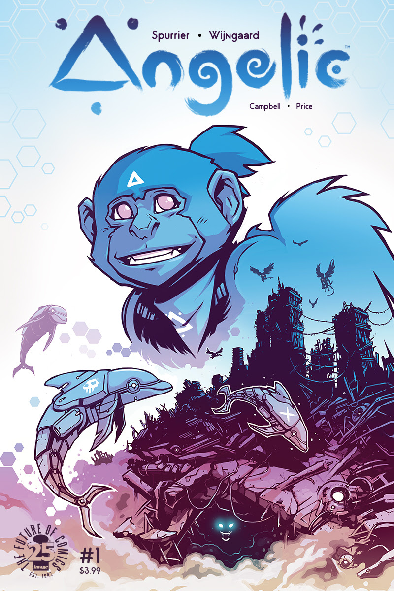 “Angelic’s about teenage flying monkeys having adventures in the far future because that’s totally a genre now,” said Spurrier. “But in the best traditions of age-friendly fiction—think Pixar or Ghibli—there’s also a bunch of meaty themes beneath the fun: religion, parenthood, technology, and responsibility, it’s all in the mix. Ultimately it’s a tale about the Earth—after us. And all rendered in the unmistakably vivid color and crackle of superstar-in-the-making Caspar Wijngaard.”