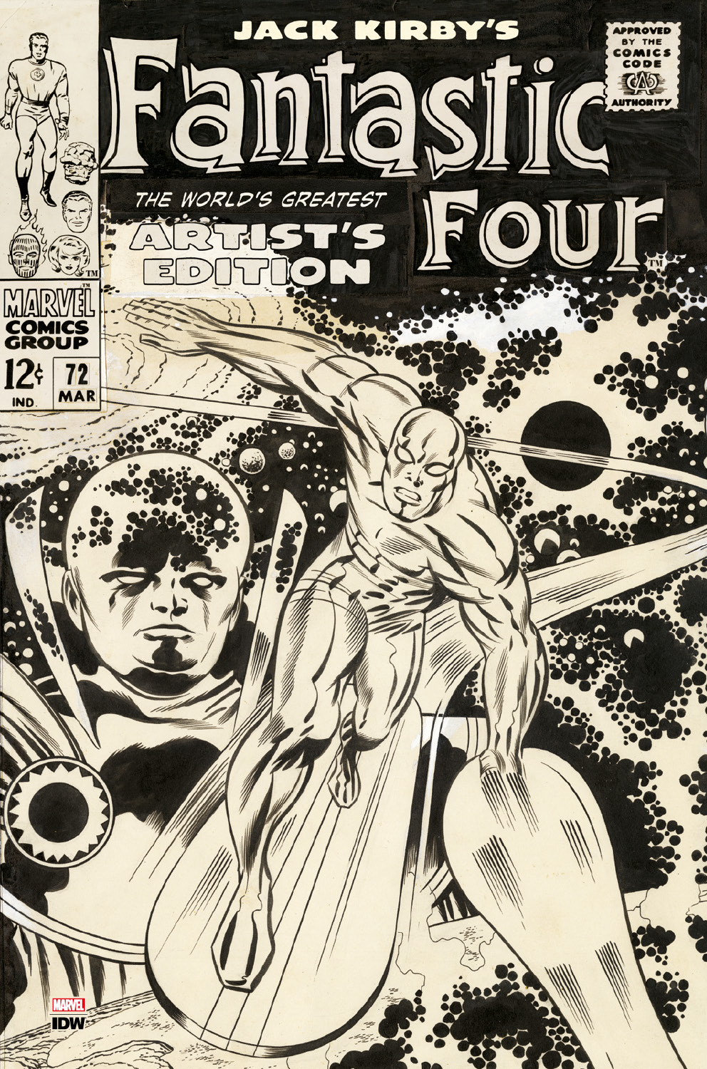 Jack Kirby was the undisputed King of Comics and IDW is proud to present the second Artist’s Edition focusing on his Fantastic Four work. And, even better, this collects his earlier, “twice up” art—it’s Kirby-sized!! This massive collection includes issues 33, 45, 47, and 60 of the Fantastic Four, plus a stellar gallery with 22 (!!) classic covers, and incredible pages, and three gigantic fold-outs–if you are a Kirby fan, this is the Artist’s Edition you’ve been waiting for!! Debuting at this year’s SDCC is the variant cover featuring Fantastic Four #72.