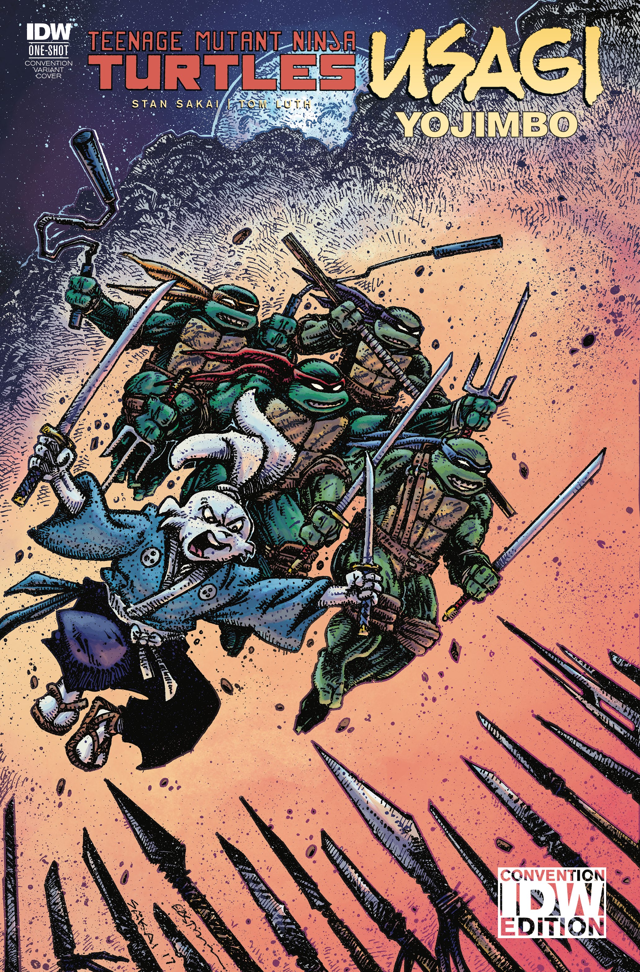 TMNT co-creator Kevin Eastman and Usagi Yojimbo creator Stan Sakai collaborated on this gorgeous convention variant! The TMNT are teleported to a world of talking animals—the world of Usagi Yojimbo! Get your copy signed at the booth!