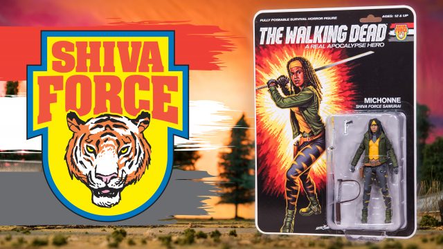 How do you top last year’s The Walking Dead Negan and Glenn two-packSan Diego Comic-Con exclusive? Skybound has done just that with The Shiva Force Four-Pack, which features 5″ figures of The Walking Dead‘s Rick Grimes, Michonne, King Ezekiel, and Shiva dressed in a unique Shiva design (and each figure in the set is also individually packaged on a vintage card back with new painted artwork by Jason Edmiston). The four-figure set, which was designed by McFarlane Toys, also includes weapons of choice for Rick, Michonne, and Ezekiel, and will retail for $100. There will be two gift-box variants: a regular color version and a bloody variant, which are limited to 1,000 copies each.