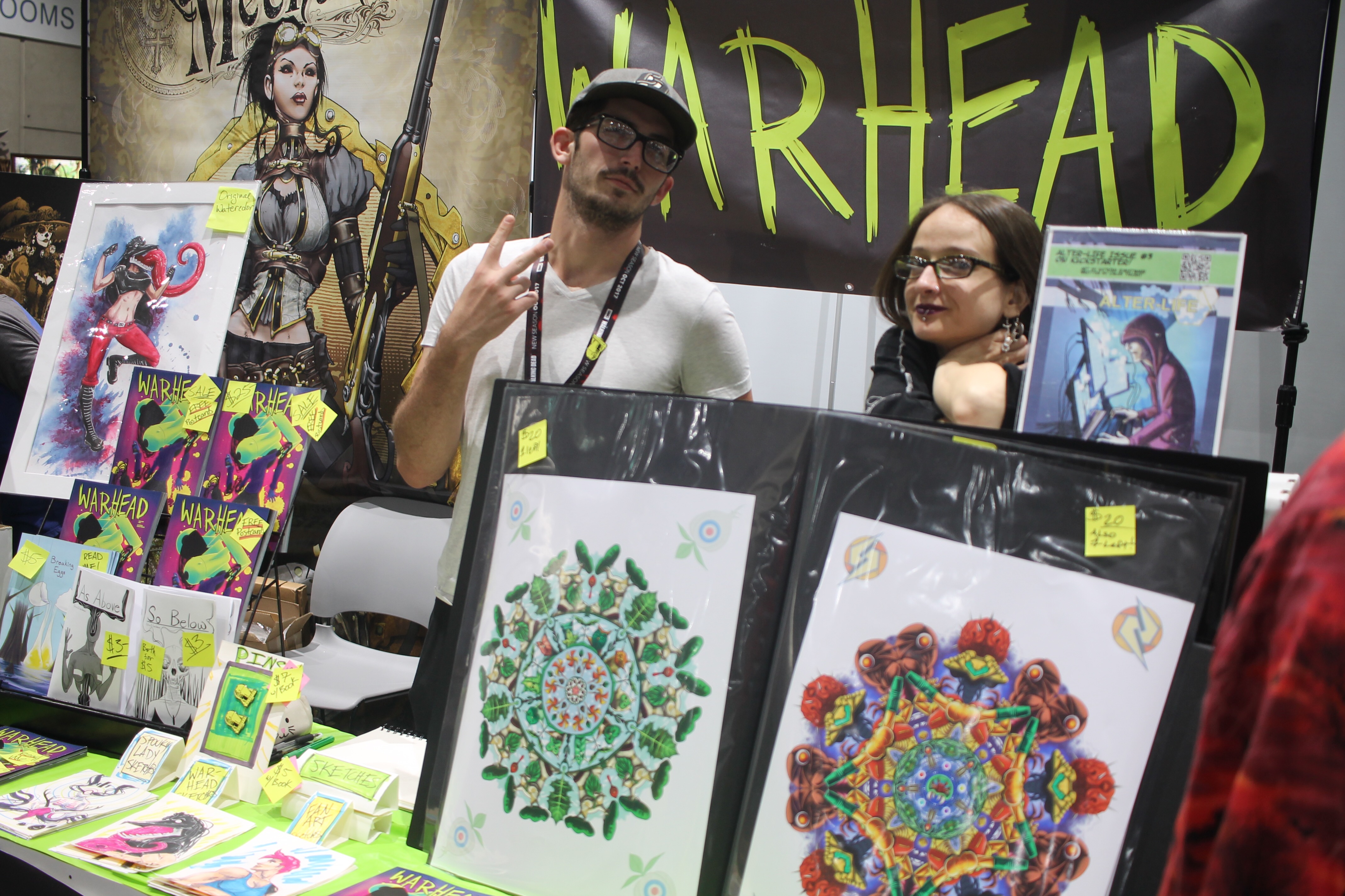 In the Small Press area at the Warhead K. E. K. booth. On the right is Katrina E. Kunstmann, artist. Check out her work here and her Warhead webcomic here.