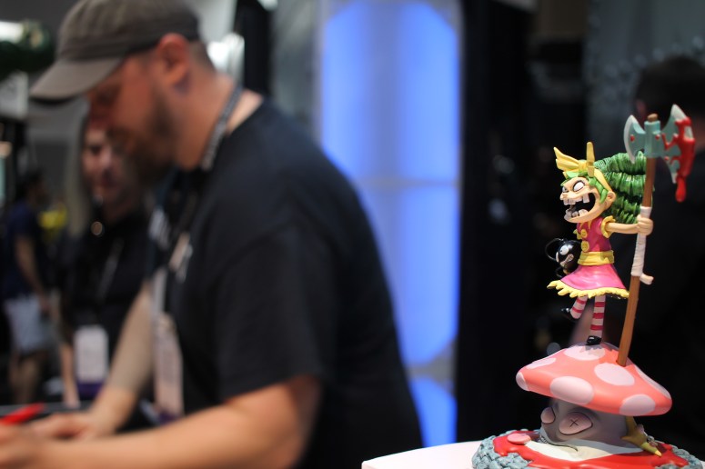 Artist, writer Scottie Young greeting and signing for fans, as Gert, star of his acclaimed Image comics series I Hate Fairyland looks on.
