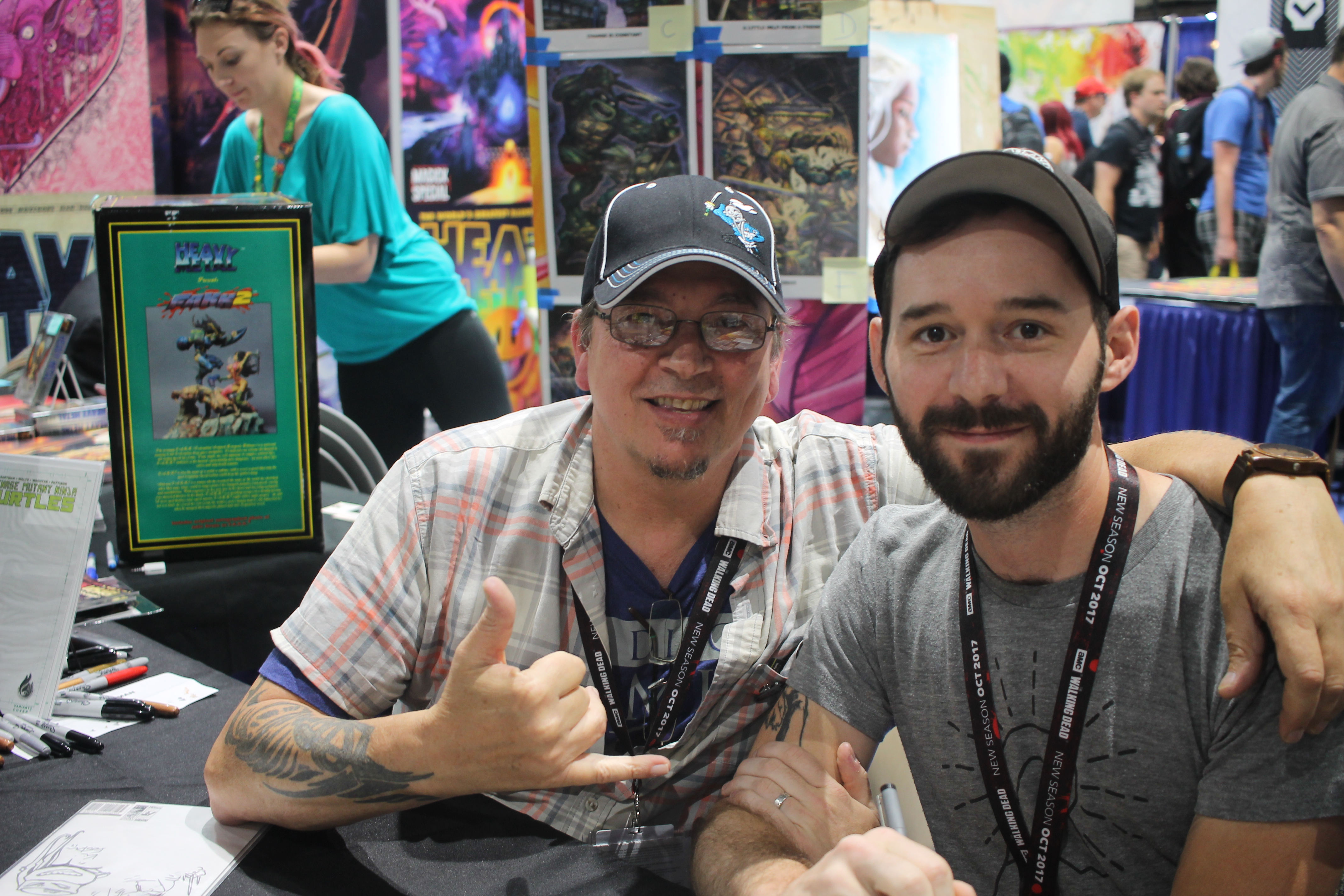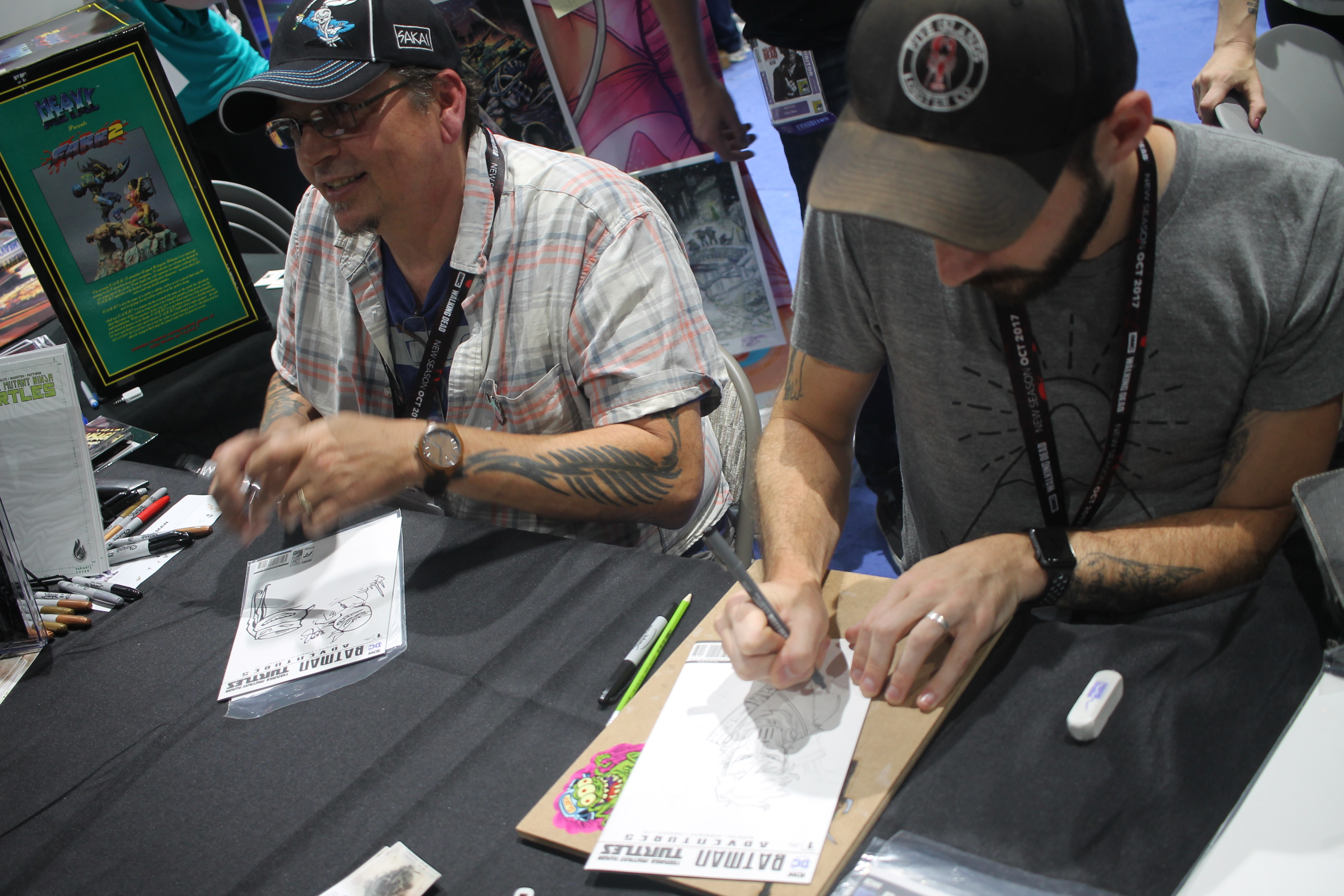 Kevin Eastman and Ben Bishop. together for signings and people greet. Also, promoting a new Kickstarter project both are working on together Drawing Blood, coming soon.
