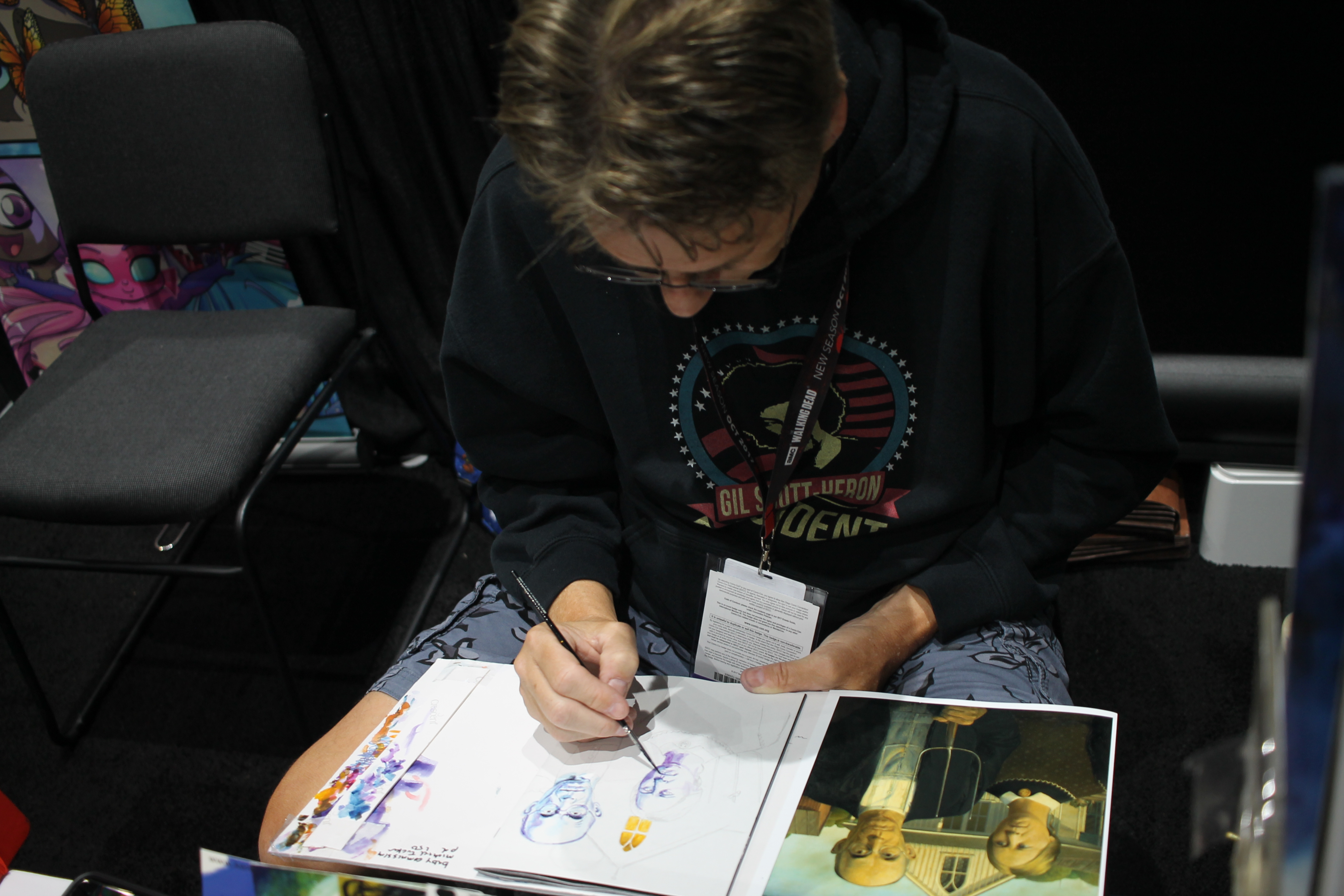 Artist Ken Mayer Jr, at work in Artist Alley.