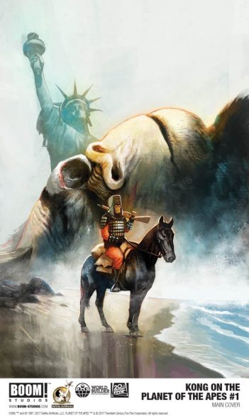 BOOM! Studios’ Kong comics are based on Joe DeVito’s Skull Island and Merian C. Cooper’s King Kong. The publisher recently completed a 12-issue series, Kong of Skull Island, written by James Asmus (All-New Inhumans) and illustrated by Carlos Magno. BOOM! Studios continues to publish Planet of the Apes comics since 2011, the longest-running comic book adaptation of the property (with comics produced on both the original and current series of films). War for the Planet of the Apes is currently out, as a four-issue series by David F. Walker (Luke Cage) and Jonas Scharf (Warlords of Appalachia), set before the Fox film.