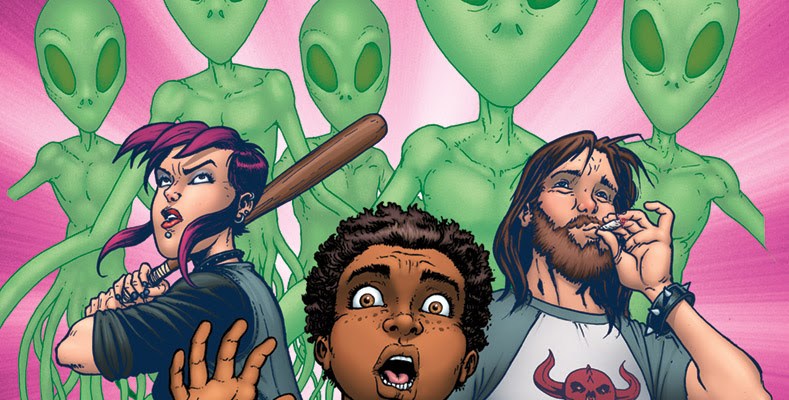 “Think John Carpenter’s They Live meets Freaks & Geeks,” said Geoffo. “This is how Dennis pitched me the series, and once I heard that, I couldn’t wait to draw this crazy fun thing! I’m so eager to share it with the world. You’re gonna love it, and you don’t even have to get high to enjoy the ride!”