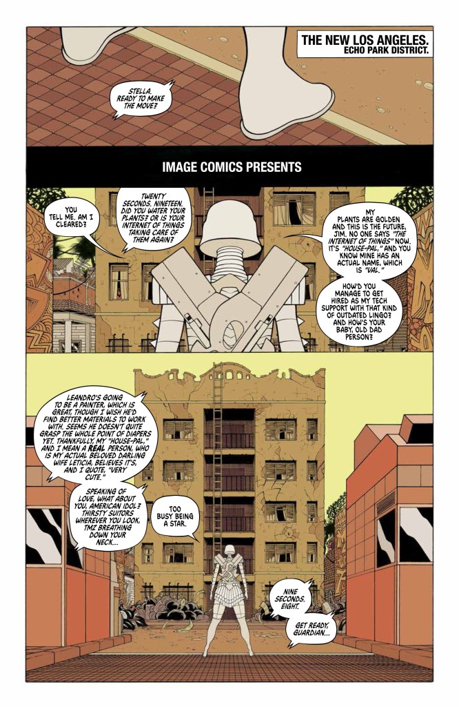 This new series is presented as a ballistic sci-fi action romance miniseries that begins with a massive-sized debut issue and features a backup comic introducing the talents of Aaron Stewart-Ahn and Sunando C.