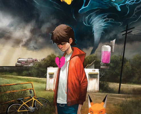 “I’m putting so much of myself and my life into this book that sometimes I have to remind myself there’s not really a raging tornado monster chasing me,” said Young. “It’s like we took a Don Bluth movie, Miyazaki, the dark adventures of old Henson movies, and my childhood, then put them in a blender.”