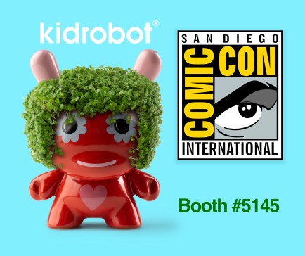 “This one-of-a-kind SDCC exclusive Dunny collectible let’s you and grow some foliage into your urban jungle. Renowned artist Jeremyville’s take on the Chia Dunny features flower eyes straight from the 60s, a colorful, warm glaze and a message of positivity: Grow Love Daily. Like any Chia pet, it’s up to you to care for this collectible and help him grow his ‘do. Cha-cha-cha- CHIA!”
