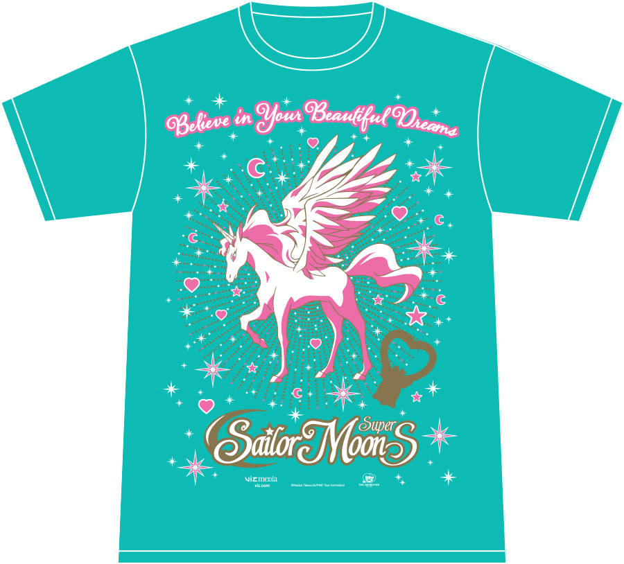 Exclusive teal t-shirt featuring Helios from Sailor Moon SuperS. Shirts are available in Ladies’ and Unisex styles.