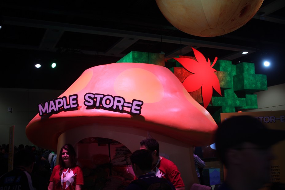 Maple Story had a huge booth promoting its sequel, Maple Story 2. The original was a cult hit a decade ago, and cool to see it still going and have a huge following here.