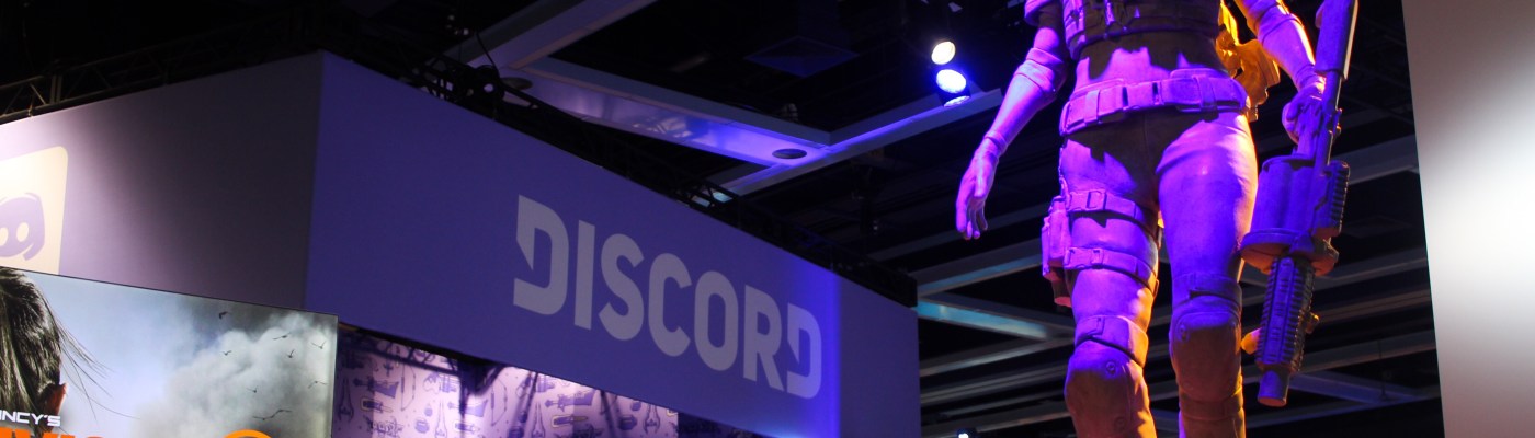 A typical view of a PAX West game booth, between the Ubisoft and Discord booths.
