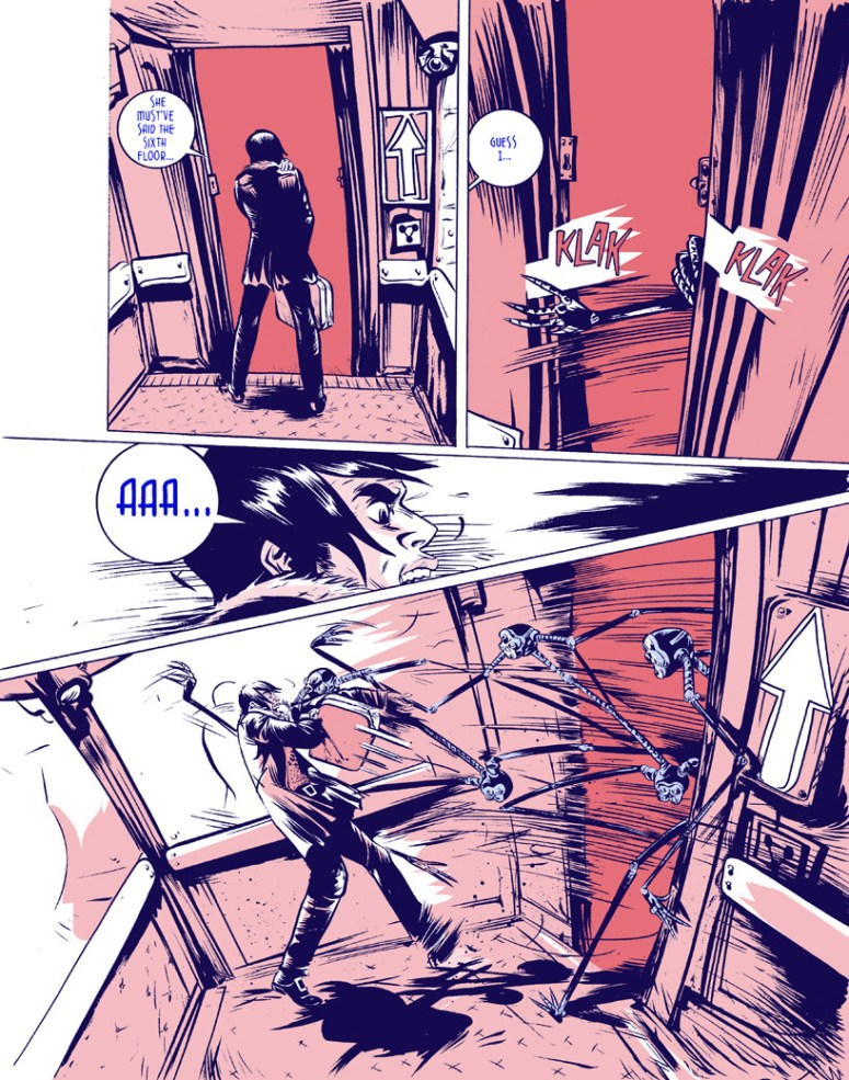 This new edition will collect issues #1-5 of the Heavy Liquid series and feature newly remastered colors by Pope to restore them to his original vision, making them more vibrant and powerful. This new edition is designed and edited by the artist himself, restores the artwork for the first time to its original “widescreen” format (wider than typical US comics), and features a newly refined two-color palette. The opening and closing 16 pages are in full color, including newly designed artwork for this edition and all of the original “virgin” cover designs, with logos and added type removed.