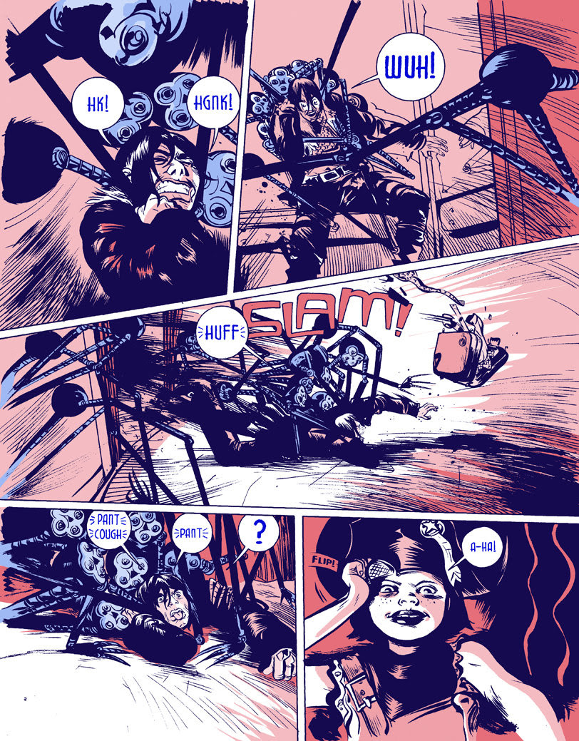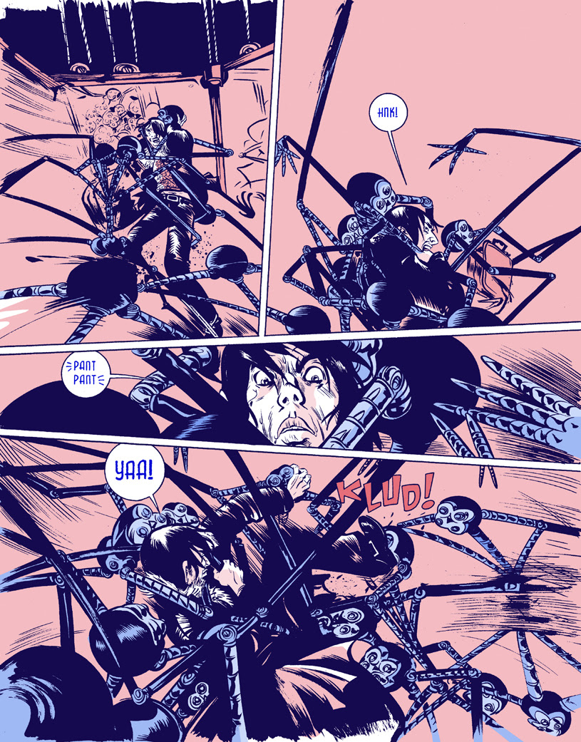 This new edition will collect issues #1-5 of the Heavy Liquid series and feature newly remastered colors by Pope to restore them to his original vision, making them more vibrant and powerful. This new edition is designed and edited by the artist himself, restores the artwork for the first time to its original “widescreen” format (wider than typical US comics), and features a newly refined two-color palette. The opening and closing 16 pages are in full color, including newly designed artwork for this edition and all of the original “virgin” cover designs, with logos and added type removed.