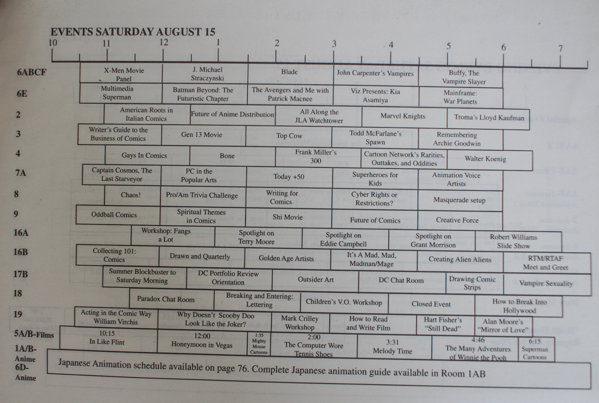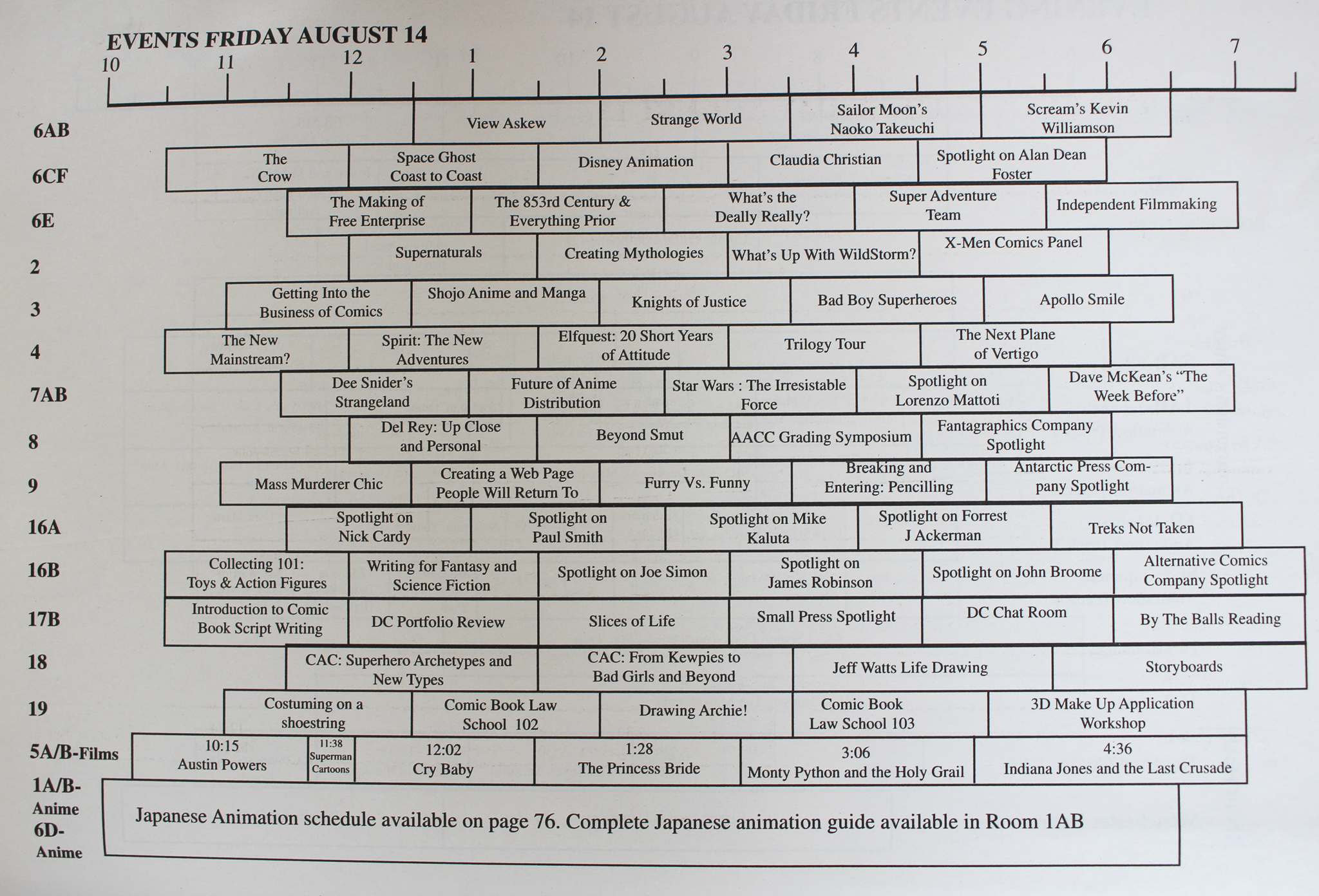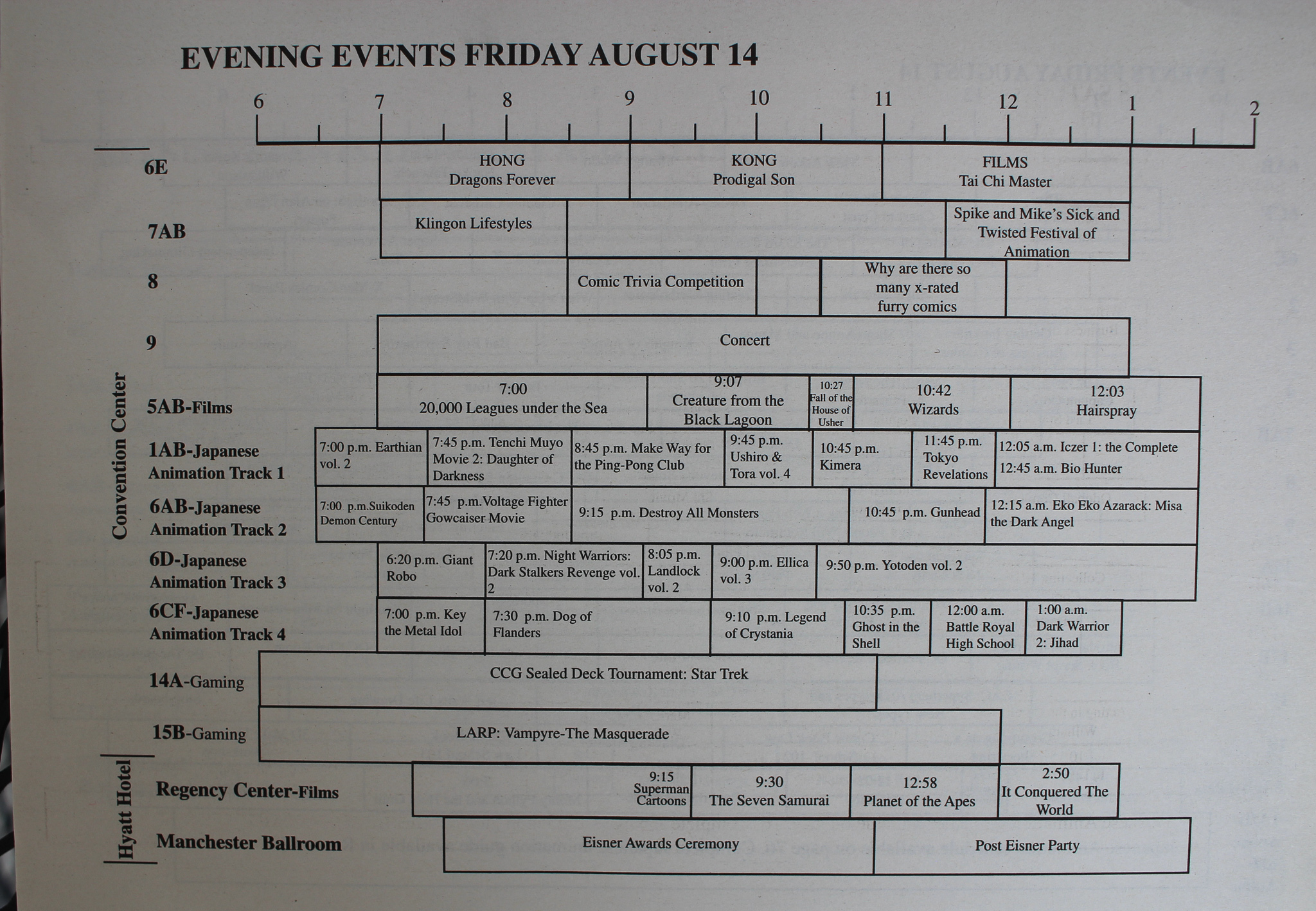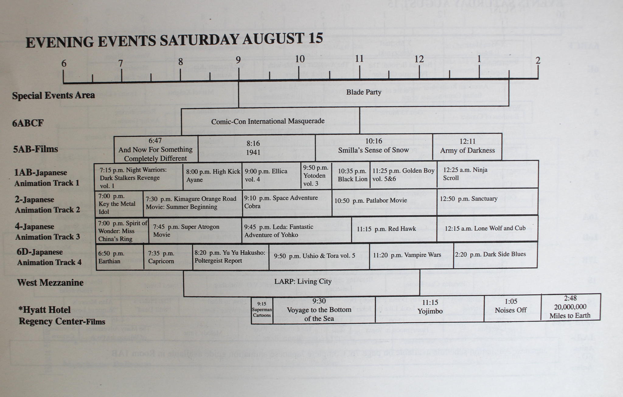 Above: The Friday and Saturday Schedule from the 1994 Comic-Con Event Guide.