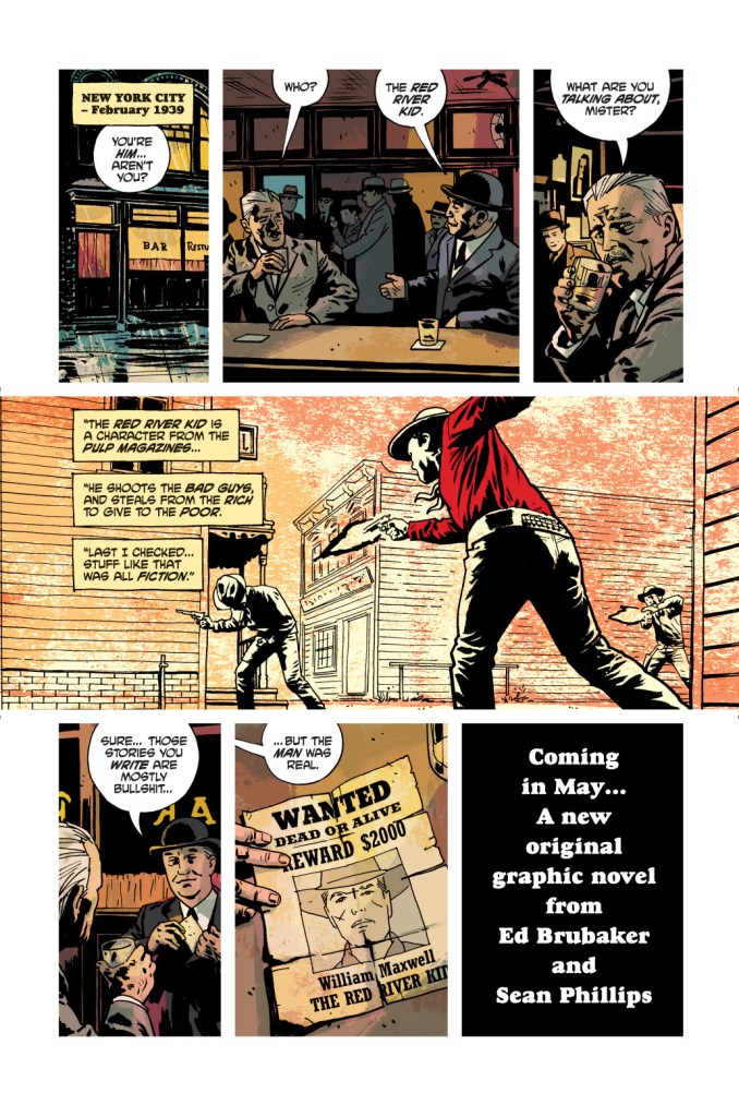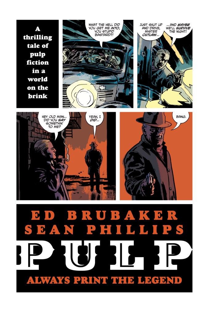 A small preview here for Pulp, an upcoming graphic novel tale from the multiple Eisner Award-winning creative team of Ed Brubaker and Sean Phillips (Criminal, My Heroes Have Always Been Junkies), published by Image Comics and set for this May.