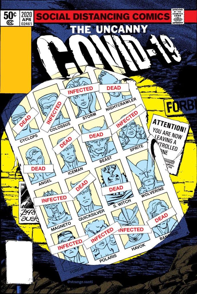 That’s what artist, cosplayer, and total comics fan Santi Strange recently posted on Imgur.com account (link here). With some clever removal of familiar figures on famous covers, some other changes and captions; we got some cool fan-art variants to relate in our social distancing times.