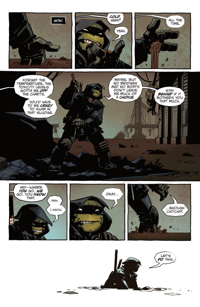 “After hitting TMNT #100 last year, we were interested in doing something even larger in scope and also something that really plays to everyone’s strengths,” says editor Bobby Curnow. “The Last Ronin is that project: the future New York we’re building is a perfect place for Tom’s immersive world-building and characterization, and Andy’s art is more innovative and engaging than we’ve ever seen. This is Kevin and Peter’s vision, but the entire team is making it their own and that’s really exciting to see.”