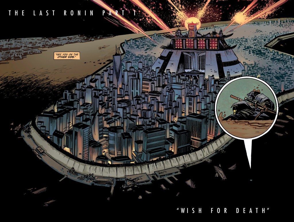 “A little over a year ago, as the ongoing series headed towards issue one hundred, I showed a rough revised and updated version of the story outline (now set in the year 2040) to Tom Waltz, who equally fell in love with the possibilities of it. The Last Ronin is a heartfelt love poem to all the TMNT universes of the past, and offers up an intense look at one possible future — firmly based on and adapted from an original thirty-three year-old idea, from the original creators.