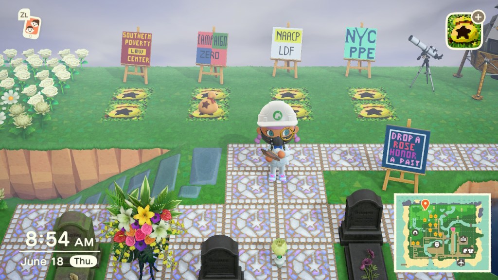“I was inspired to “say their names” and wanted to create a memorial space with the time I was spending in Animal Crossing. Coupled with not being able to be out to protest because of Covid, it made sense to try to protest from home,” explained rally organizer Adelle Lin. “There are many others who feel the same and this is an avenue for us to connect with the movement.”