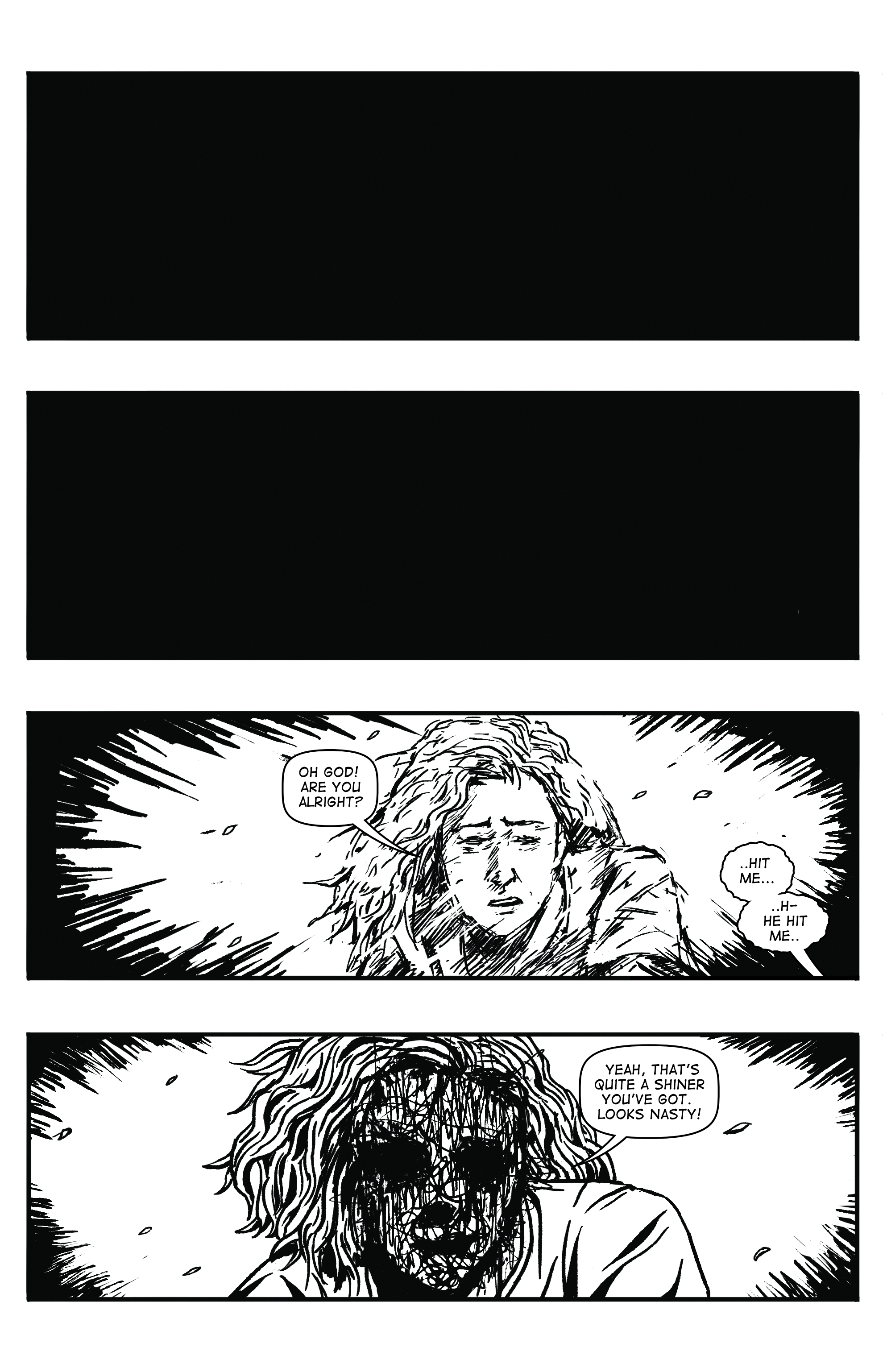 Scribbles was originally conceived as a self-contained one-shot with themes of gender identity, female friendship, assault, PTSD, hope. Writer LJ Phillips shared with SW this preview below, as she aims to promote this work further into more self-contained comics focusing on art and trauma. She is also working on Entity, a new indie comic series in production as well as Iron Nail Afternoon #2 slated for an early 2021 release.